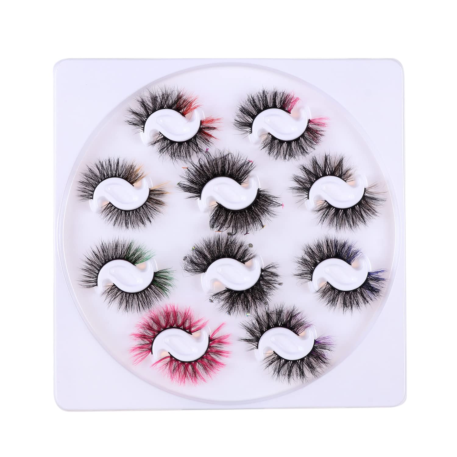 10ペアカラーつけまつげセット、カラーつけまつげ、6Dロングふわふわミンクつけまつげ、ドラマチックなバタフライつけまつげ、ハロウィンコスプレ仮装パーティーデイリーアイメイクカラーつけまつげ