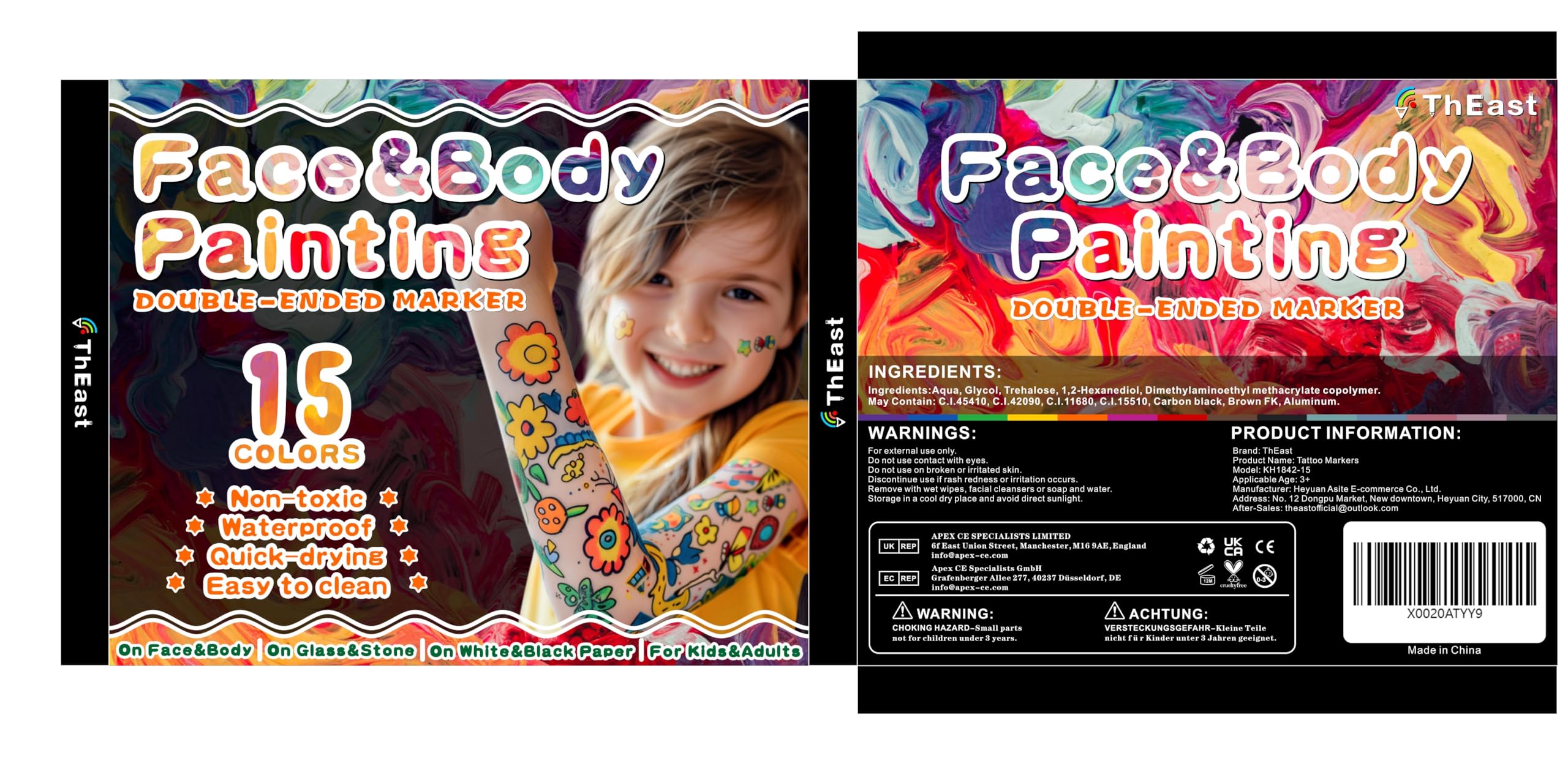 ThEast15フェイスペイントペン、デュアルチップフェイスペイントキット、皮膚用洗えるタトゥーマーカー、メイクアップショーコスプレ仮装パーティーグッズ