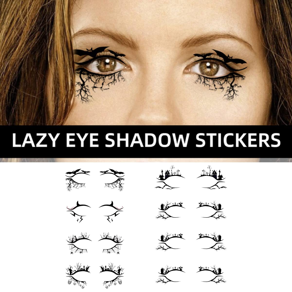 Lanito フェイスステッカー 4ペア ハロウィンアイライナーステッカー ステッカー アイメイク 仮装 シール ハロウィンメイク タトゥーシール 自己粘着性 (A)