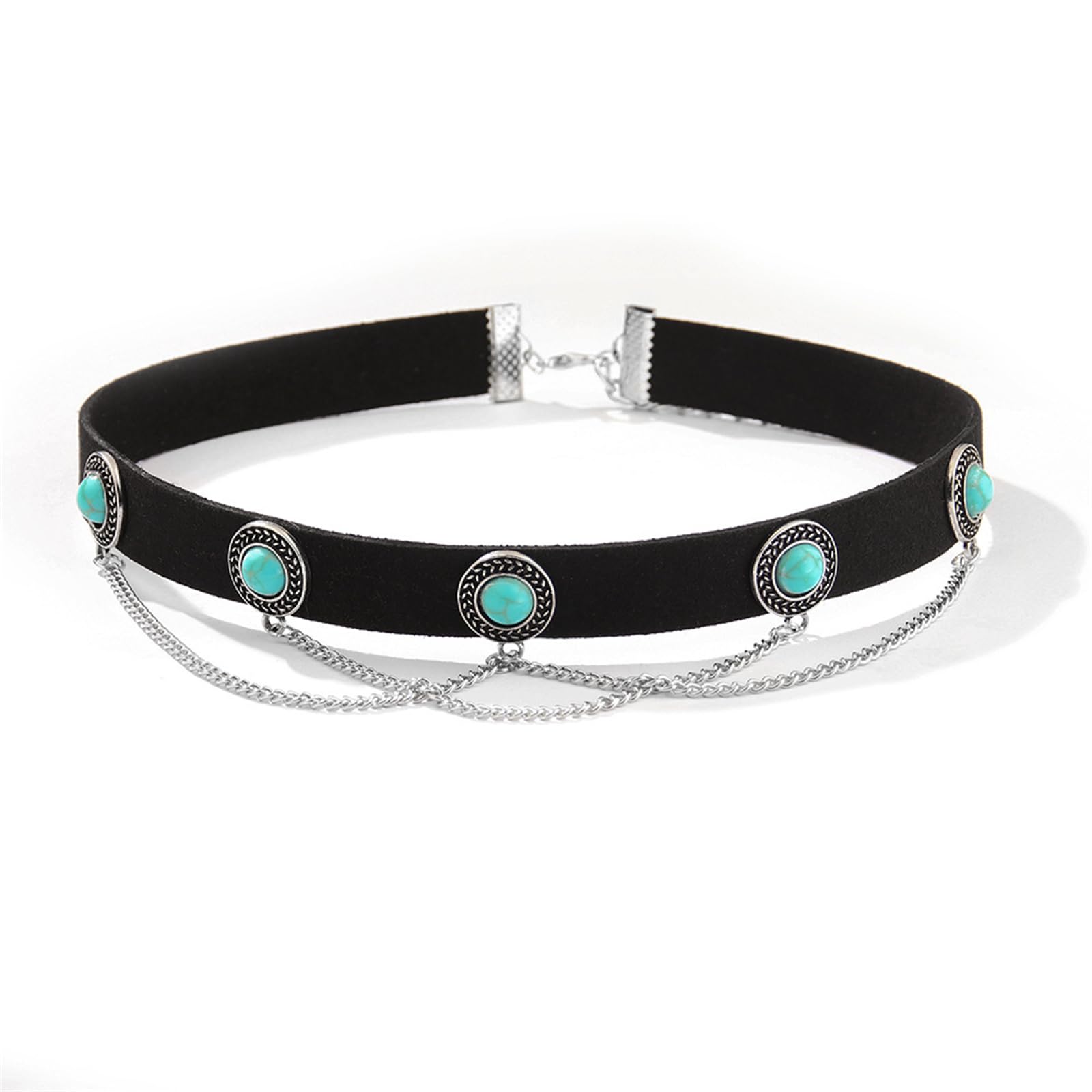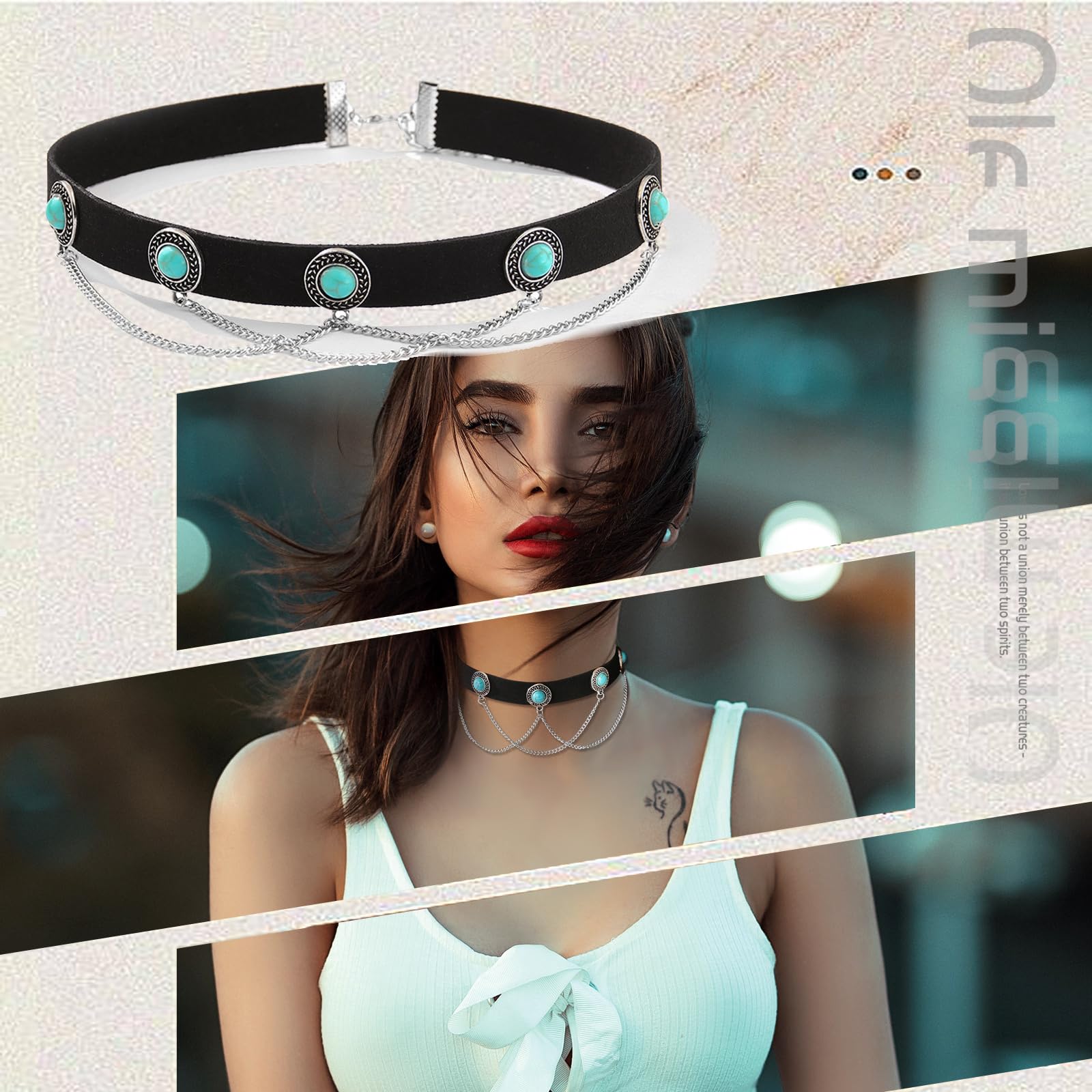 [Oidea] レディース チョーカー 首輪 女性 ネックレス ボヘミアン レザー ターコイズ 石 ハロウィン おしゃれ 黒 リボン アクセサリー エレガント ジュエリー ペンダント 恋人へ 誕生日 卒業式 高級ギフト