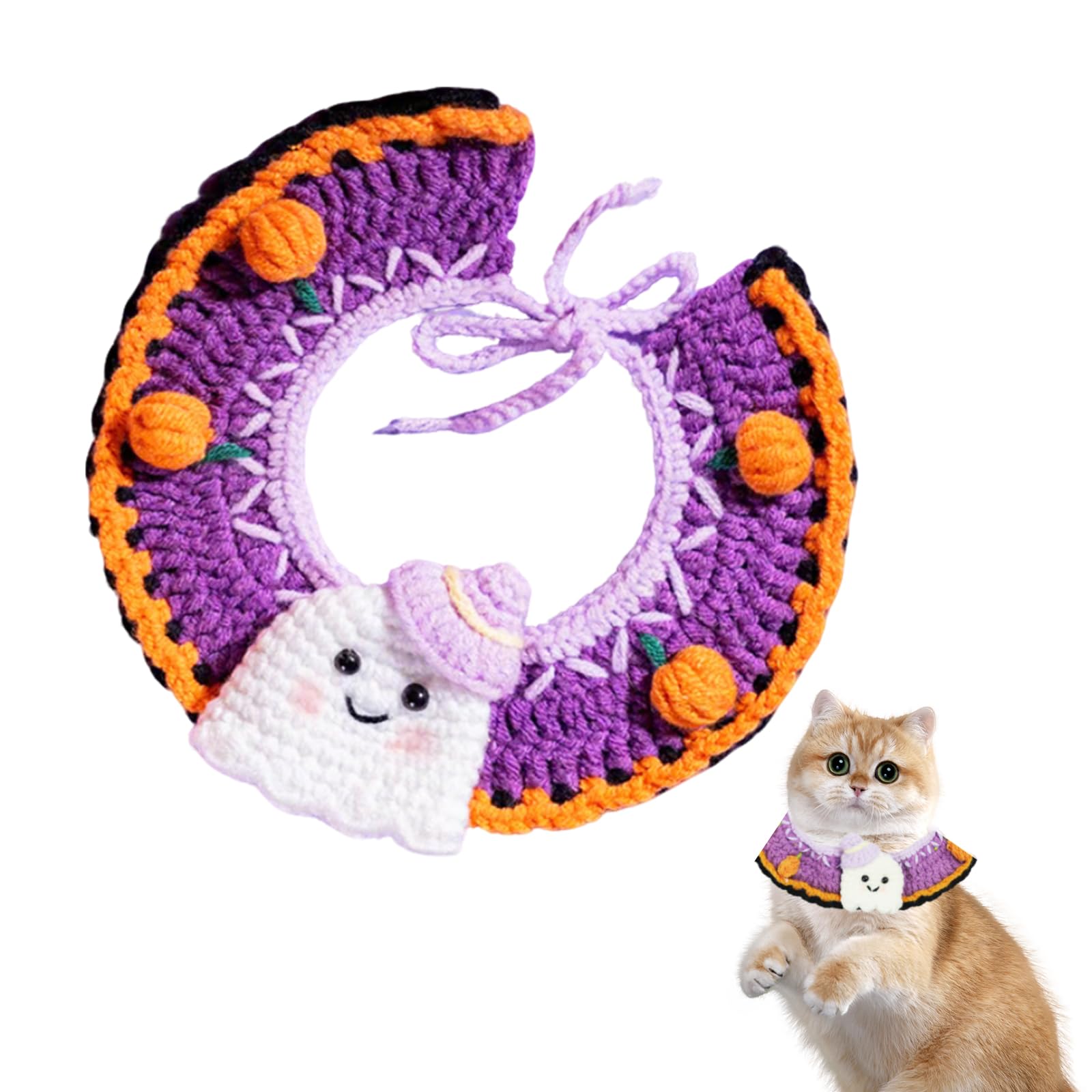 [DIFEIUKI] ハロウィン飾り 猫首輪 ニット 首輪 かわいい ヘッド スカーフ かぼちゃ 幽霊柄 猫 子犬 ネックレスアクセサリー 記念撮影 SNS映え 首周り18~25cm