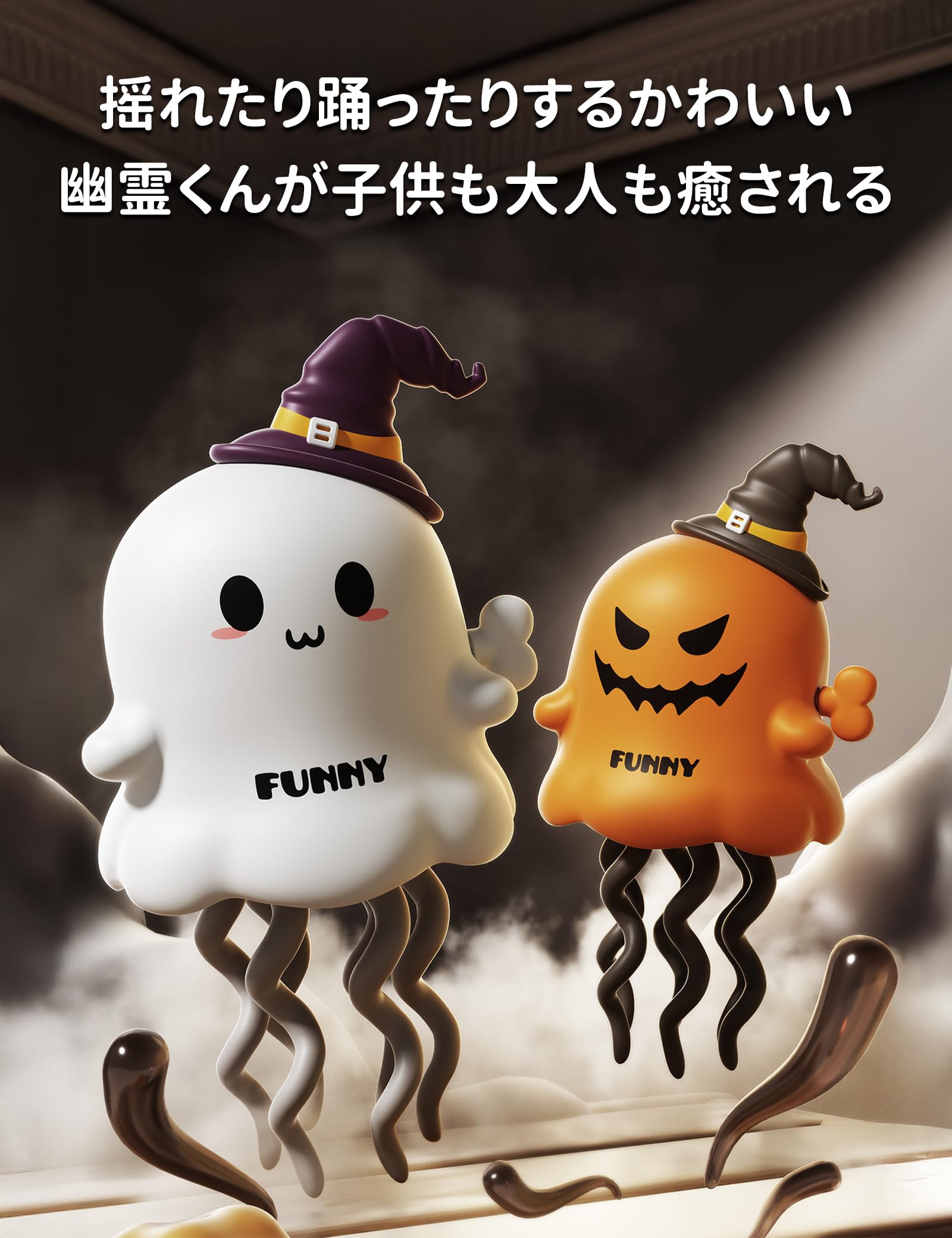 【ハロウィンの新定番・ダンシング幽灵おもちゃ】ユーモアたっぷりのダンスステップで踊る愛らしい幽灵が、ハロウィンパーティーを盛り上げます!その思わず笑ってしまうような魅力的な動きは、子どもたちはもちろん、大人も楽しめること間違いなし。ぜんまいを回すだけで始まる魔法のようなダンスは、ハロウィンの魔法の世界へといざないます。オレンジとホワイトのカラーバリエーションが、お部屋の中にハロウィン気分を溢れさせます。