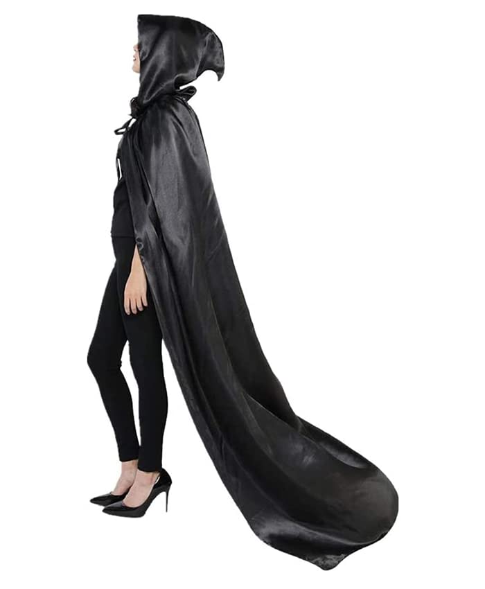 【高品質】私たちのハロウィーンのケープは高品質のポリエステルで作られています。非常に柔らかく滑らかで、変形がなく、しわがなく、通気性が良く、非常に快適で、体に軽く着用できます。ハロウィンのコスチュームアクセサリーのクラシックなフード付きマント. ケープを留めて、首で結ぶだけで肩に固定できます。 家でも、キャラクターが必要とする限りでも簡単に着用できます。
