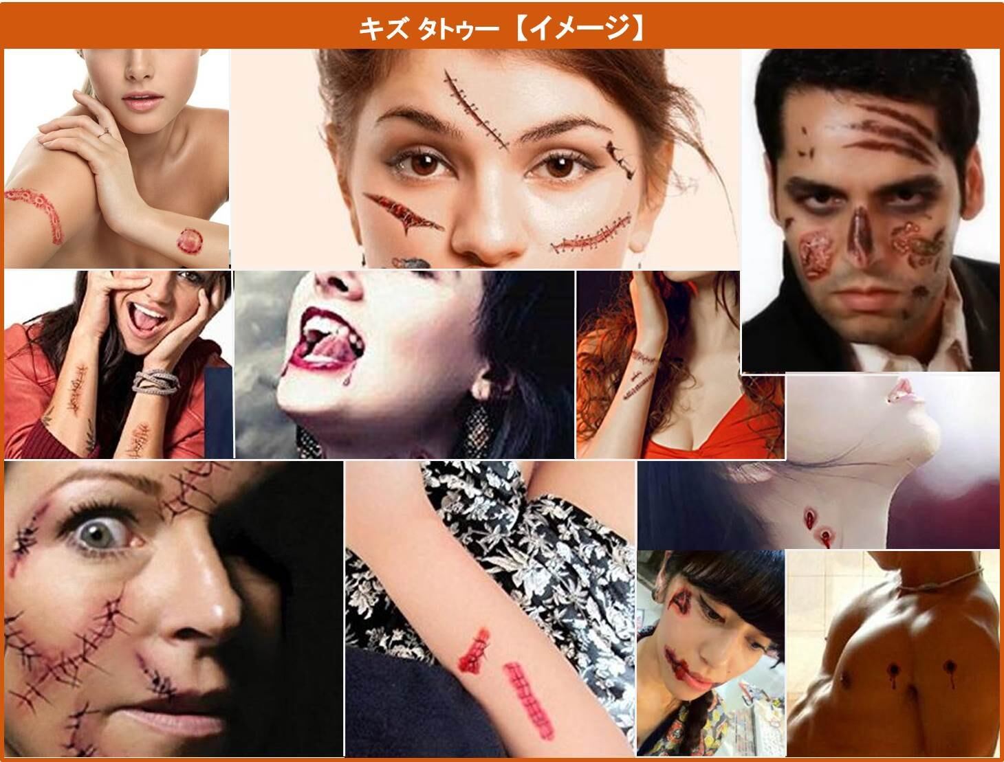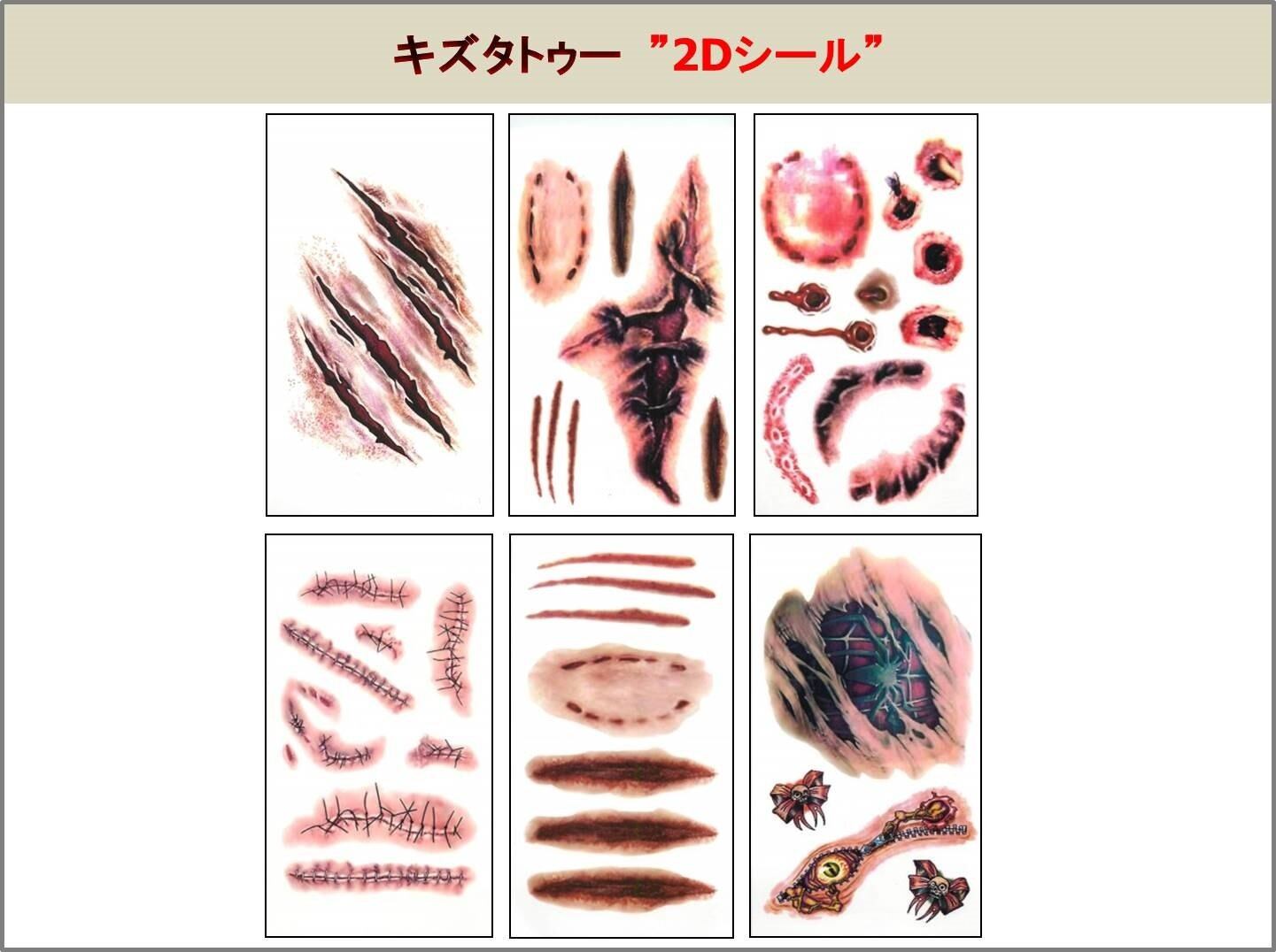 ホラー 特殊メイク タトゥー シール 切り傷 縫いキズ 引掻き傷 噛み跡 2D 3D デザイン10種 6種+3Dシール