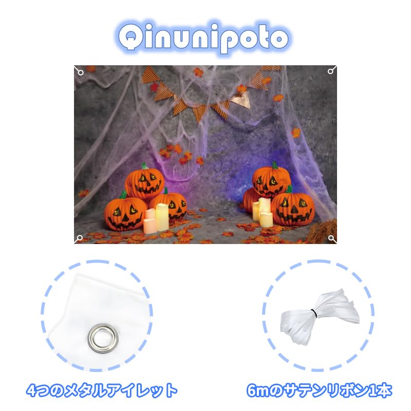 Qinunipoto ハロウィン 背景 1.5x1m ハロウィン フォトスポット 蜘蛛の巣 パンプキン 撮影背景 Halloween コスプレ 壁の飾り 写真撮影 backdrop 撮影シート 写真スタジオ ポリエステル材質