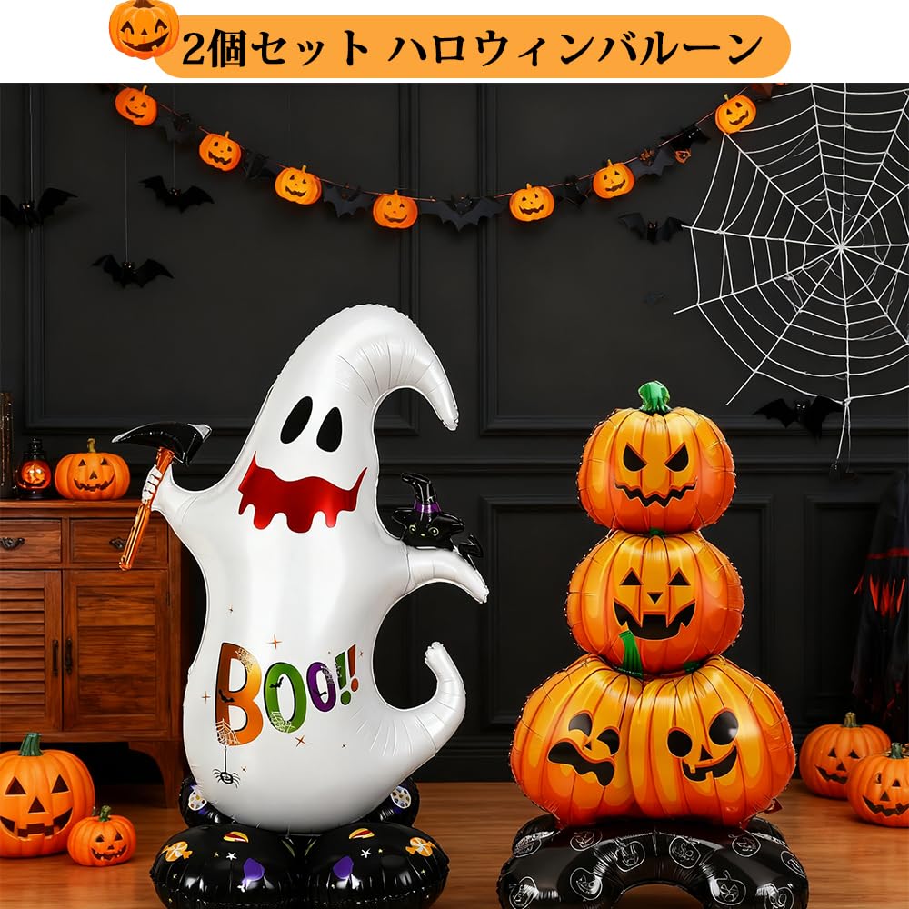 ハロウィン 風船 2個 約120cm 自立 ハロウィン アルミバルーン 飾り付け パンプキン ゴースト 玄関 お店 パーティー イベント デコレーション