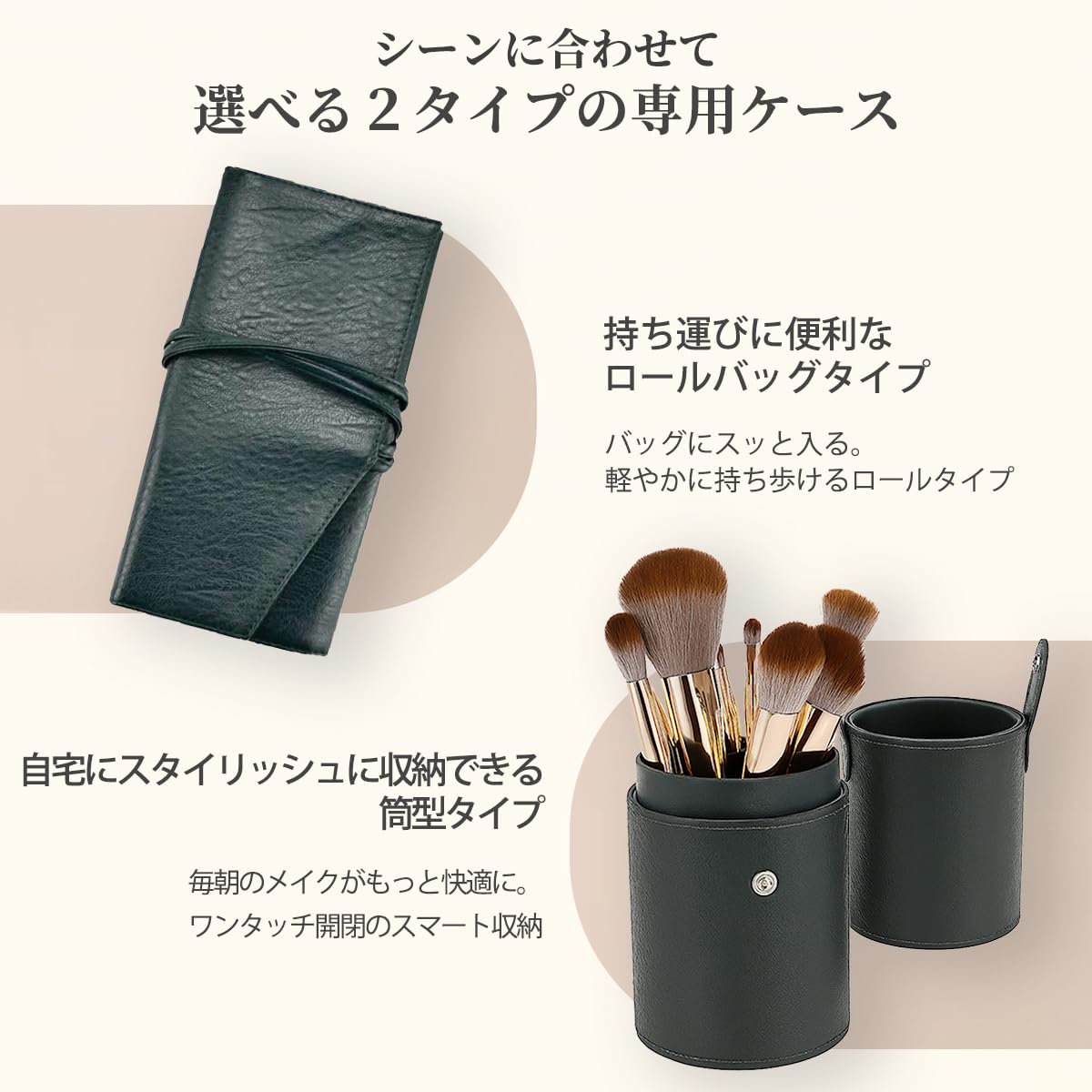 セット内容 フェイス・アイ・リップ用など用途別メイクブラシ14本+選べる専用収納ケース(ロールタイプ/筒型)