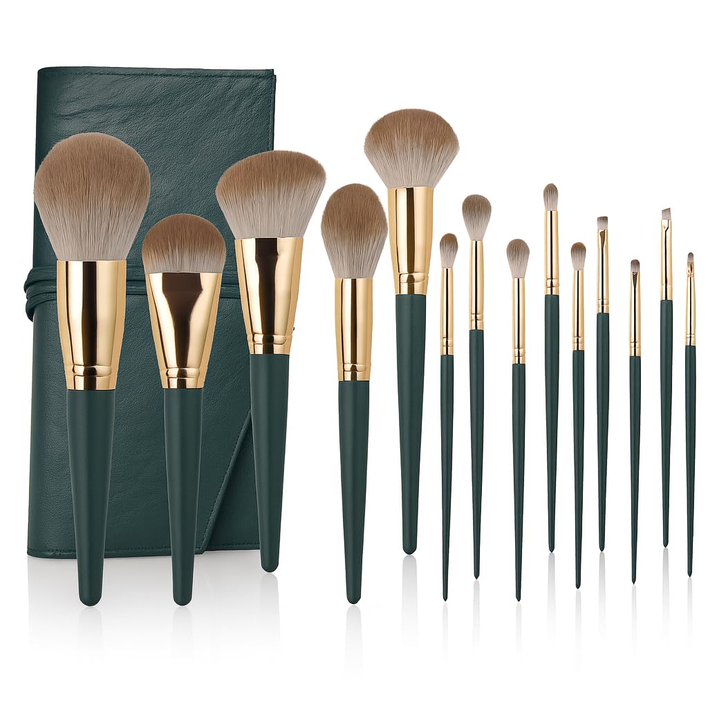 Thujopsis メイクブラシ 化粧ブラシ 14本セット 化粧ポーチセット 持ち運びに便利 プロの仕上がり 専用ケース付き (ロールバッグタイプ)