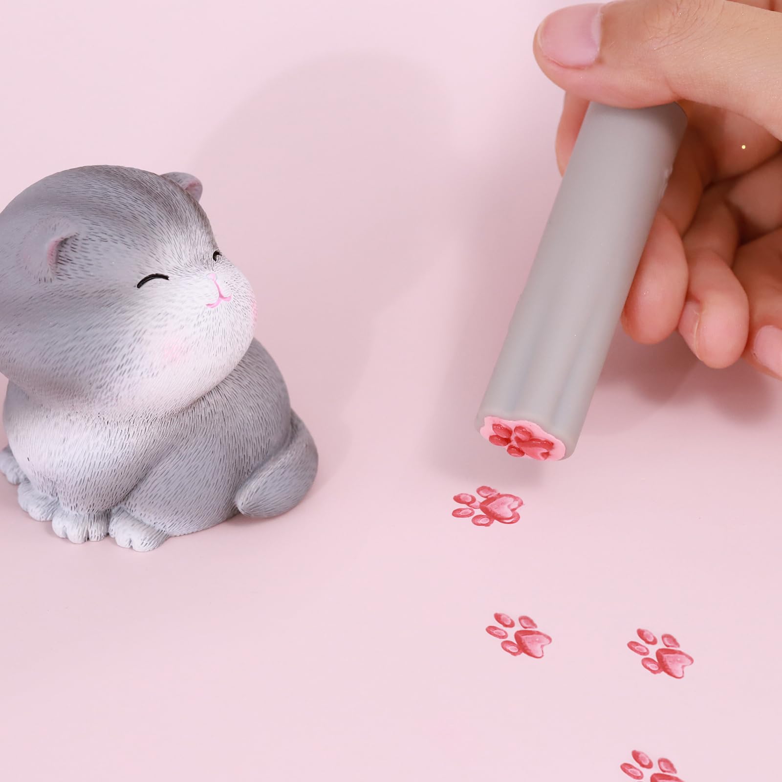 【特別にデザインされたハンドル】ブラシのハンドルは高級なマットな感触を持ち、ハンドルの端は滑りにくい非円形のデザインで、テーブルなどから滑り落ちにくくなっています。底部には可愛らしいピンクの猫の手状のソフトパッドがあり、日常の手帳のスタンプとしても使用できます。非常に可愛らしく特別です。