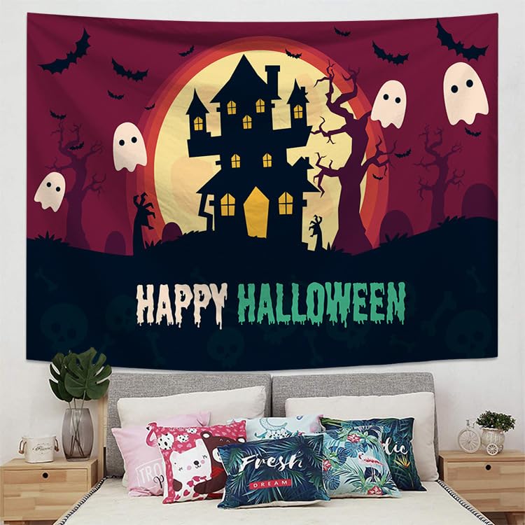 【2022最新】WAMiYA ハロウィンタペストリー ハロウィン飾り 壁 ハロウィン装飾 おしゃれ 壁掛け かぼちゃ ハロウィンガーランドインテリア 布ポスター (E 95×73) | libertyislan
