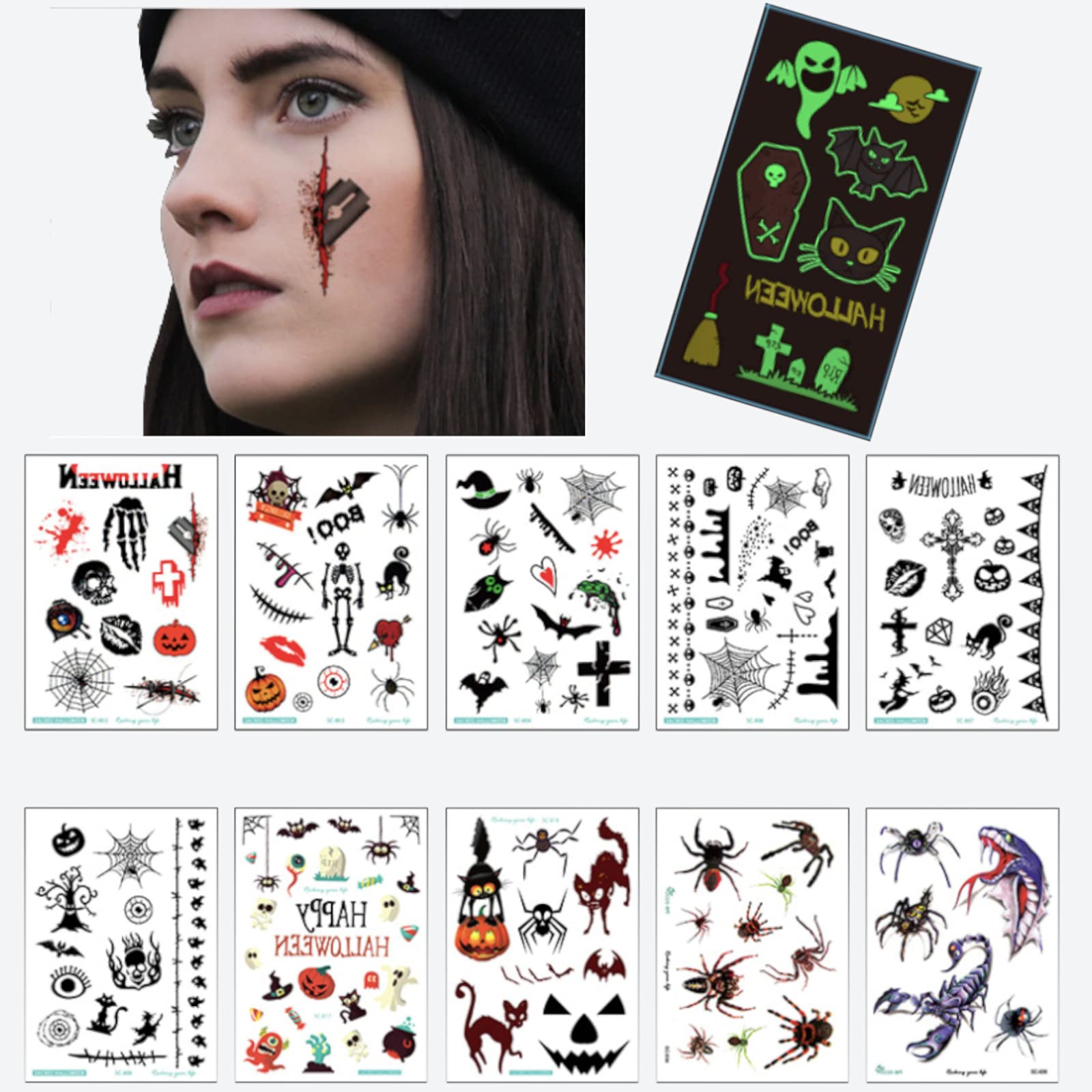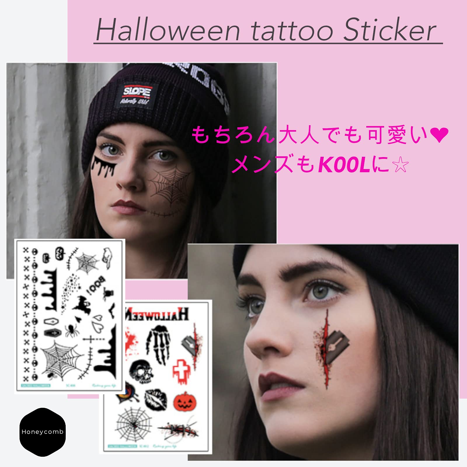 ハロウィンなどのイベント、クラブ、お祭り、肝試し、ドッキリ、パーティーの仮装用、特殊メイク用に使えるタトゥーシール。キズや血のり、歯形シールなどがありゾンビメイクにピッタリ。顔や腕や足、体や背中等、お好きな場所に貼ってください。
