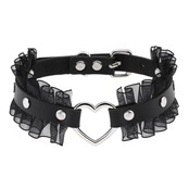 [Flongo] チョーカー 首輪人間 レディース レザー 革 ネックレス ベルト 調節可能 ハート 原宿系 パンク ゴシック ヒップホップ 学生 人気 可愛い cosplay 学園祭 ハロウィン クリスマス 誕生日 記念日 プレゼント ギフト袋付き 4色可選択