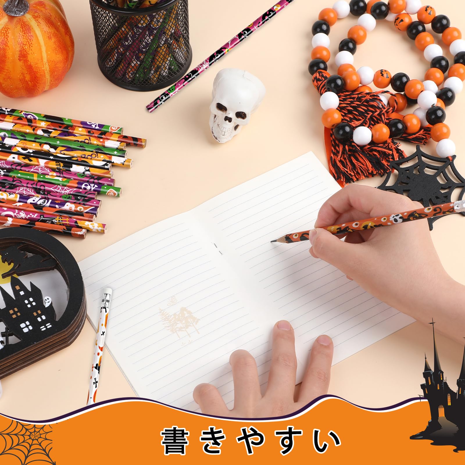 FINGOOO ハロウィン 鉛筆 景品 えんぴつ 12種・48本入 教師用 ご褒美 可愛い HB 文房具 筆記具 プレゼント ギフト 学園祭 縁日 イベント お祭り (ハロウィン)