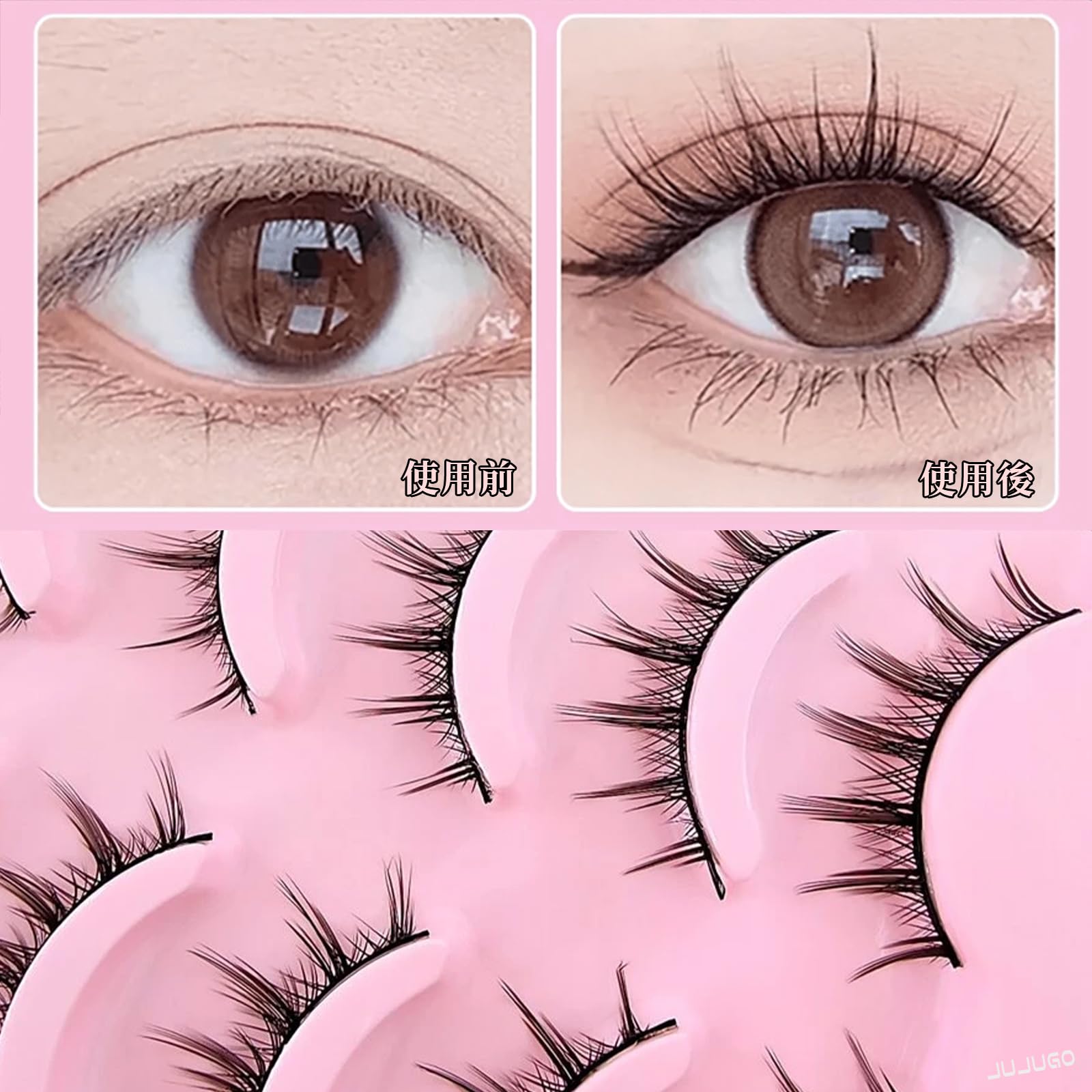 JUJUGO つけまつげ 009小悪魔スタイル 10組セット 透明バンド ナチュラル 束感 マンガまつげ コスプレ 日常メイク