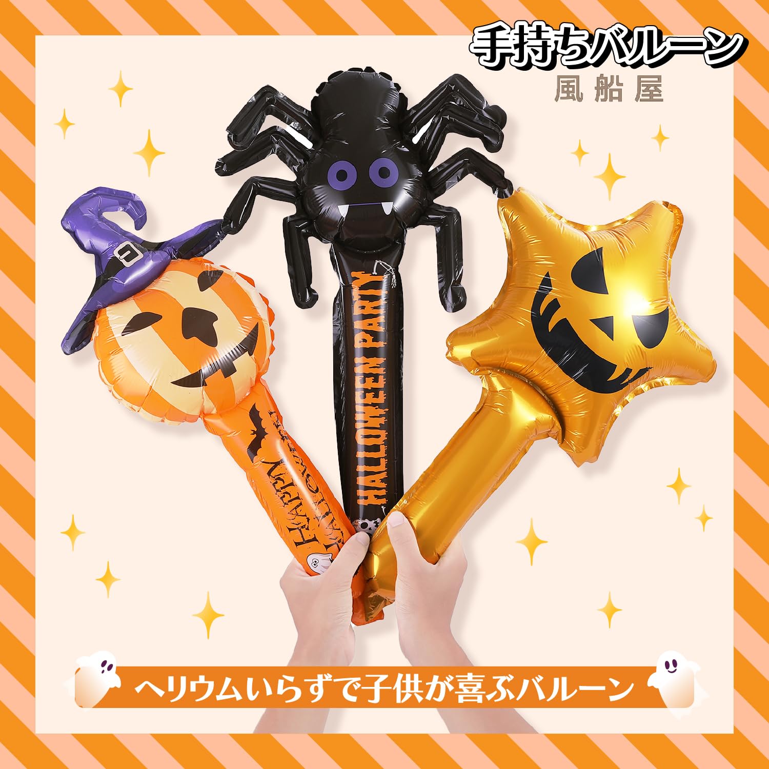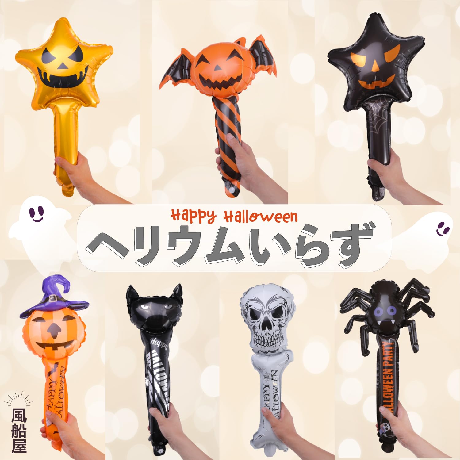 【ハロウィンバージョン】コスプレの時に持つのにも最適店舗やお土産で配ったり、パーティー等でお部屋に飾り付けたり持って撮影していただいた後、帰りにプレゼントとして配ることができますヘリウムいらずで華やかなので地域のイベントや模擬店での景品にもおすすめできます。