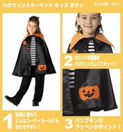 黒いマントに、パンプキンとお星様の可愛いパッチワークがデザインされたマント。