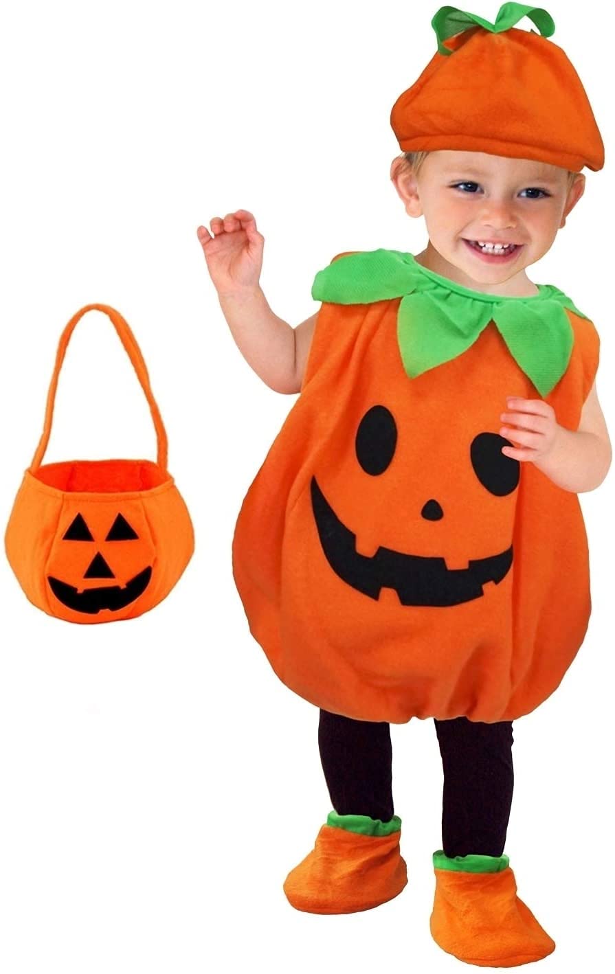 赤ちゃん用のジャック・オ・ランタンモチーフのコスチューム かぶりタイプの衣装でお着替え簡単 手軽に可愛く楽しいハロウィンを演出します