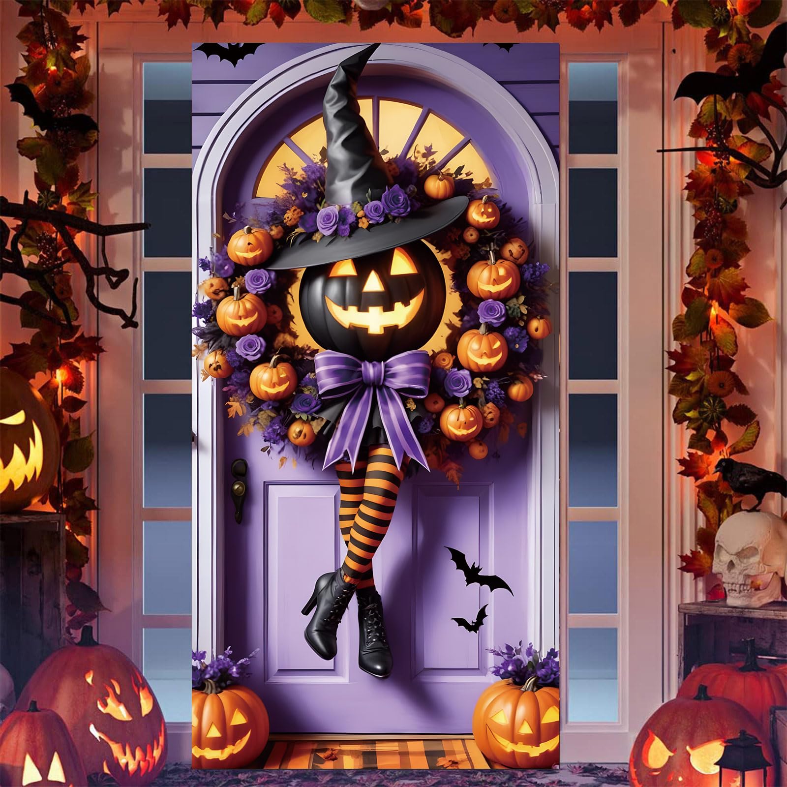ハロウィンバナー:ハロウィンのために特別にデザインされたバナーです。巨大なかぼちゃタイプの魔女はドアの前に立っているような姿で、ハロウィンの雰囲気満々です。壁に掛けるだけで、ハロウィンの気分を盛り上げます!