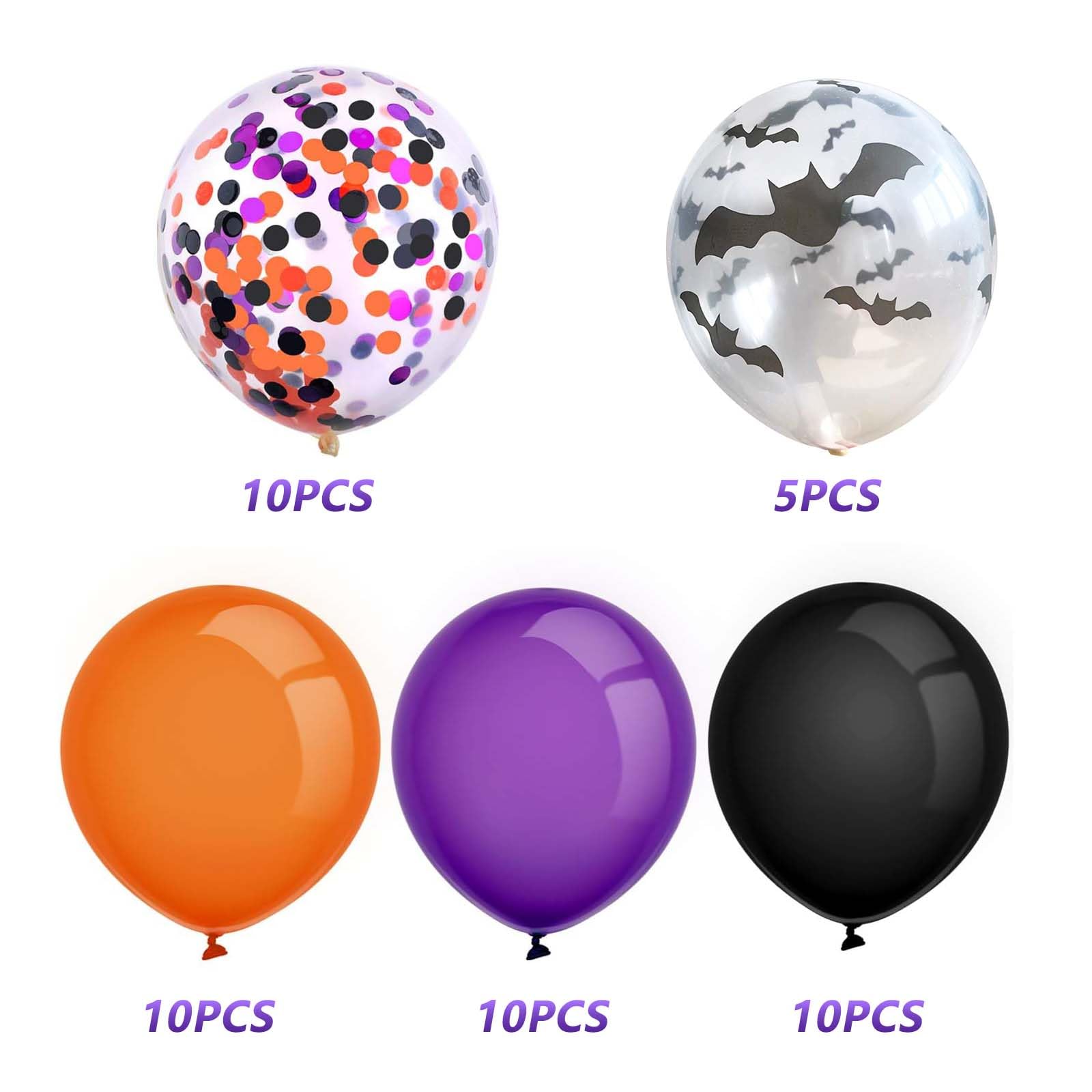【商品仕様】色:紫色10個 ブラック10個 オレンジ10個 紙吹雪10個 透明バット5個