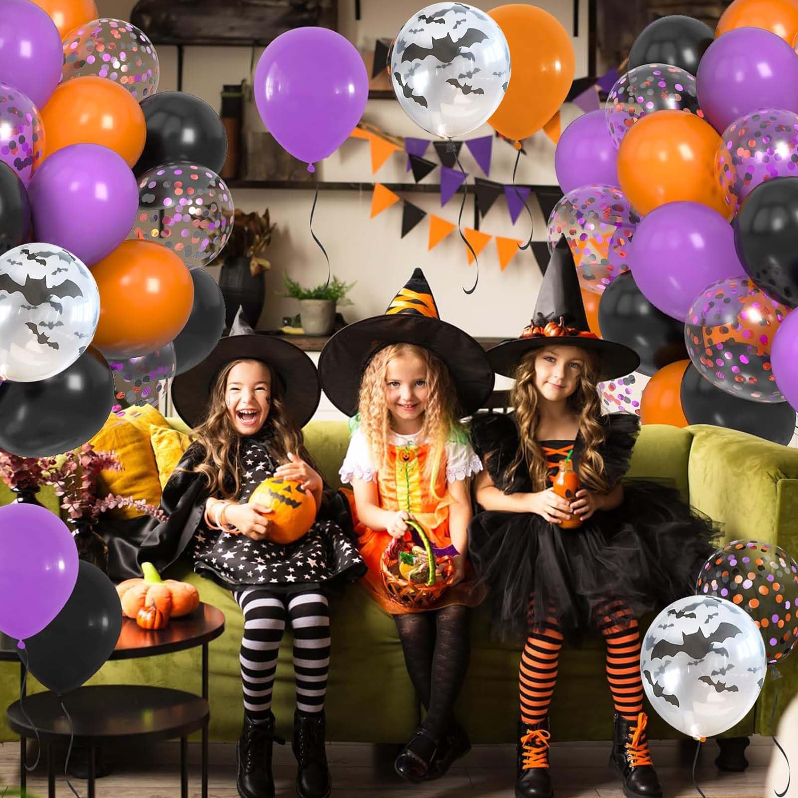 【新着商品】ハロウィン バルーン 風船 HALLOWEEN 45個入り 飾り 人気 紙吹雪 大量 学園祭/文化祭/お化け屋敷/店舗/ハロウィーンイベント 装飾用 紫色 ブラック オレンジ 紙吹雪 透明バット ハロウィン 装飾 ハロウィングッズ | libertyislan