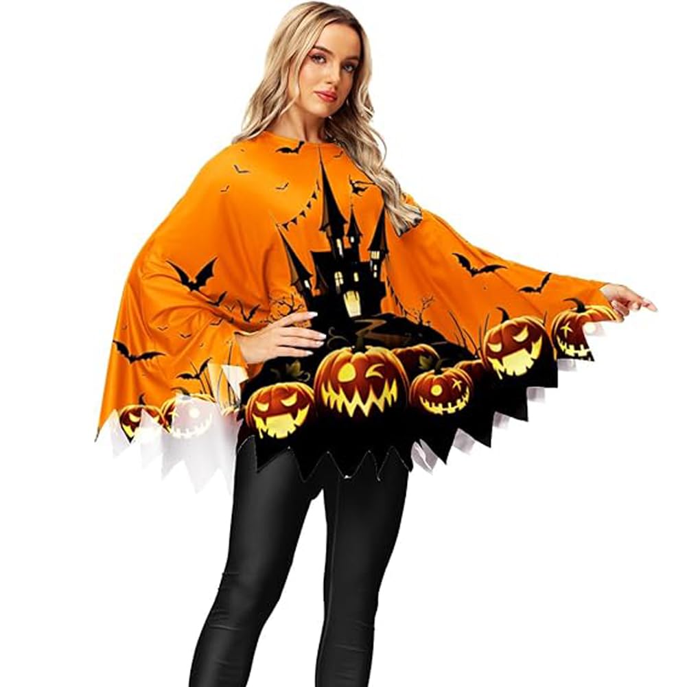 [LJZM] ハロウィン マント 大人用 かぼちゃ ポンチョ蜘蛛 幽霊 お化け ケープ コスプレ 魔女 巫女 ウィッチ 仮装 レディース メンズ 男女兼用