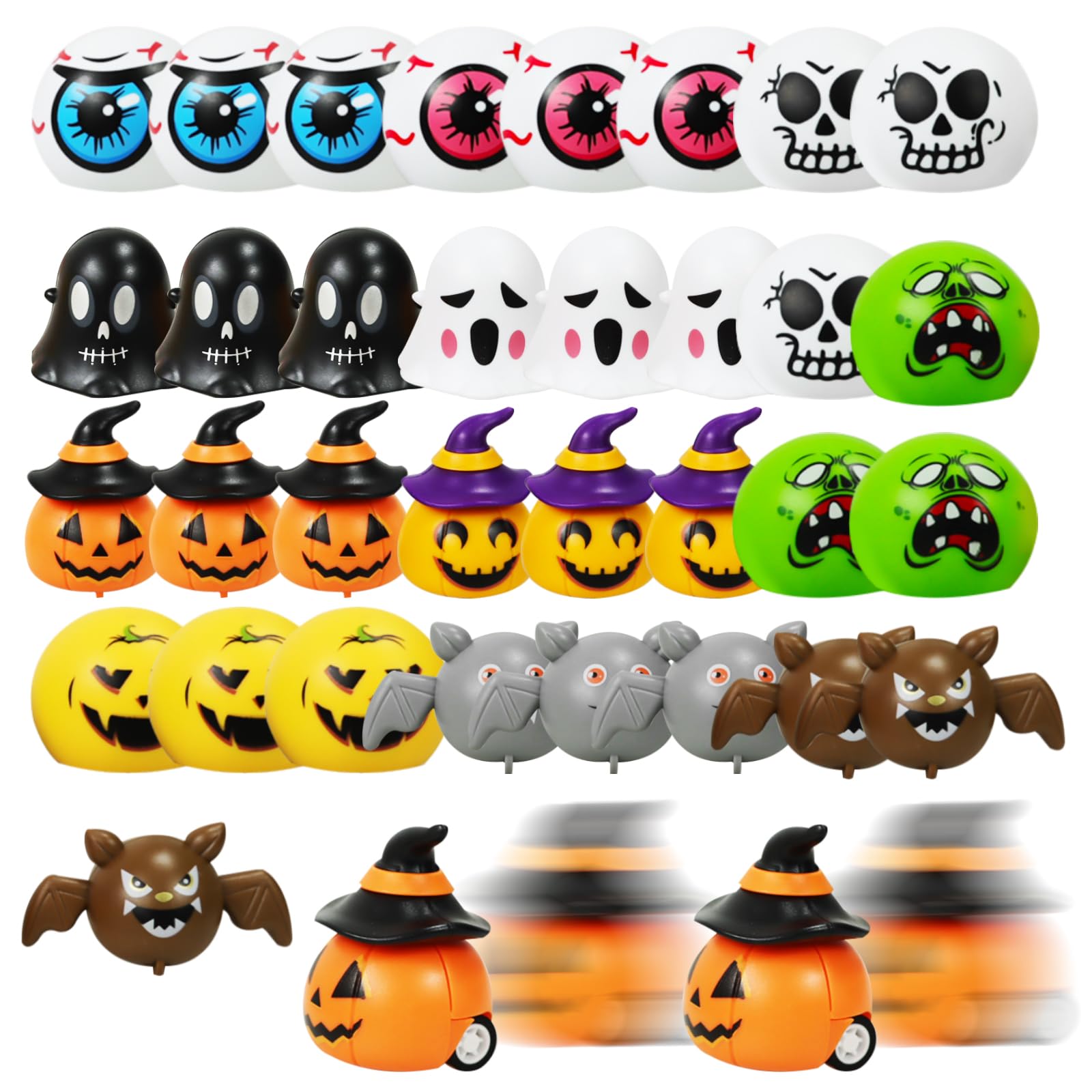 DIFEIUKI ハロウィン飾り 回送車機能 33個セット カボチャ 幽霊 コウモリ 眼球 11種類 かわいい ハロウィン おもちゃん ミニチュア オーナメント 置物 玄関小物 記念品 景品 パーティーグッズ
