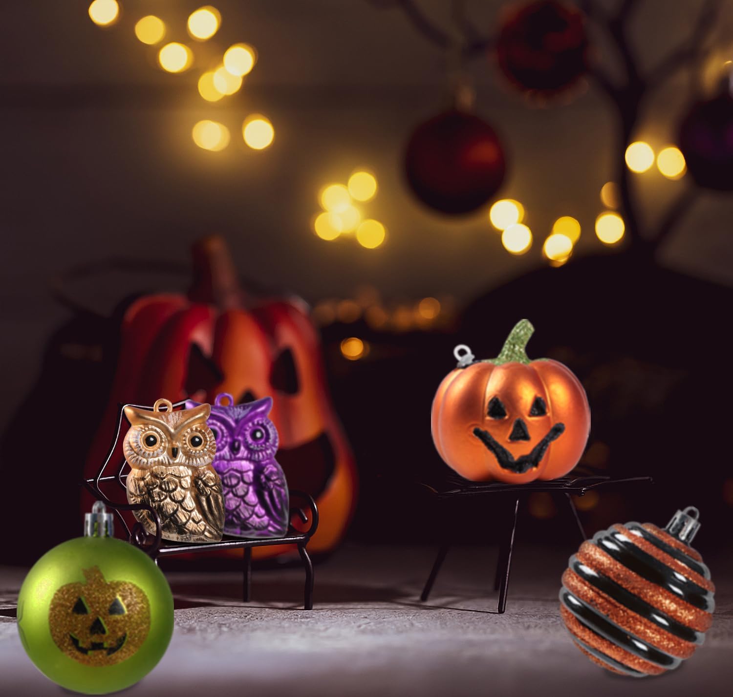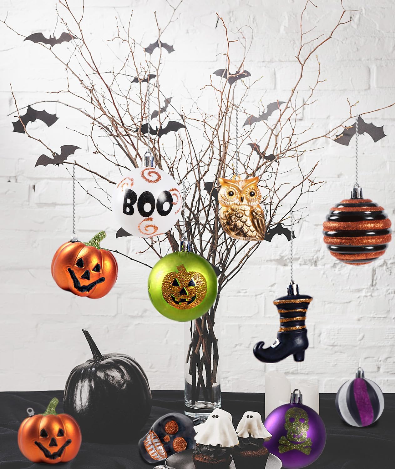 【すぐ飾れる!】手入らず、箱から出してすぐ簡単に飾り付けられます。テーブルの上などに置いたり、ツリーや天井から吊り下げ飾りにしたり、窓辺に吊るしたり、あらゆる方法で飾ることができる。家族や友人、恋人と一緒に飾れば、パーティにハロウィンの雰囲気が盛り上げます。お手持ちのツリーがキュートと華麗に大変身。