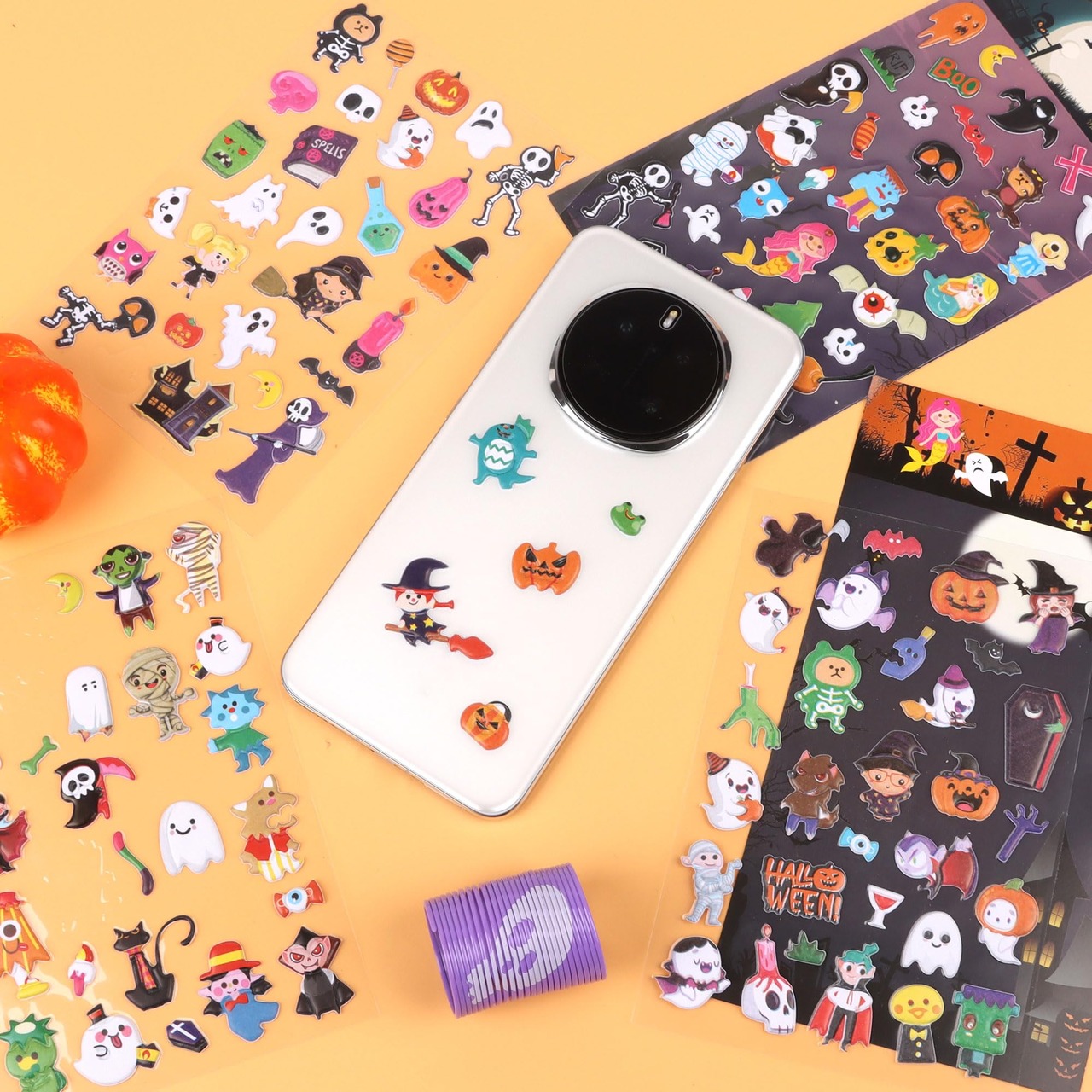 DERAYEE ハロウィン シール 可愛い ご褒美 3D ステッカー 飾り 約220枚入り DIY 手作り ノート 手帳 素材 幽霊 カボチャ クモ 黒猫 ハロウィン絵柄 包装 プレゼント 贈り物
