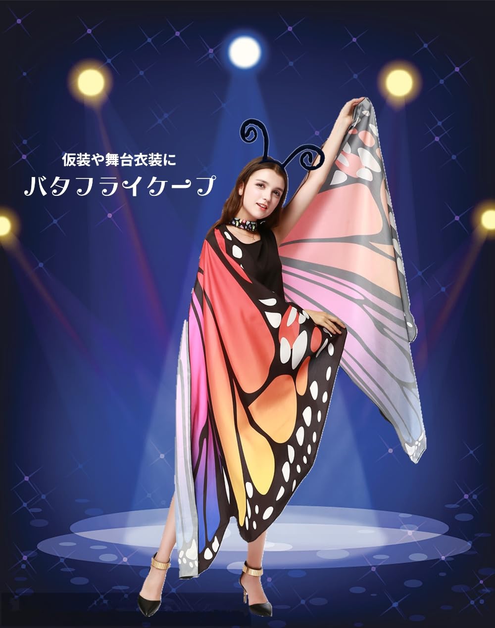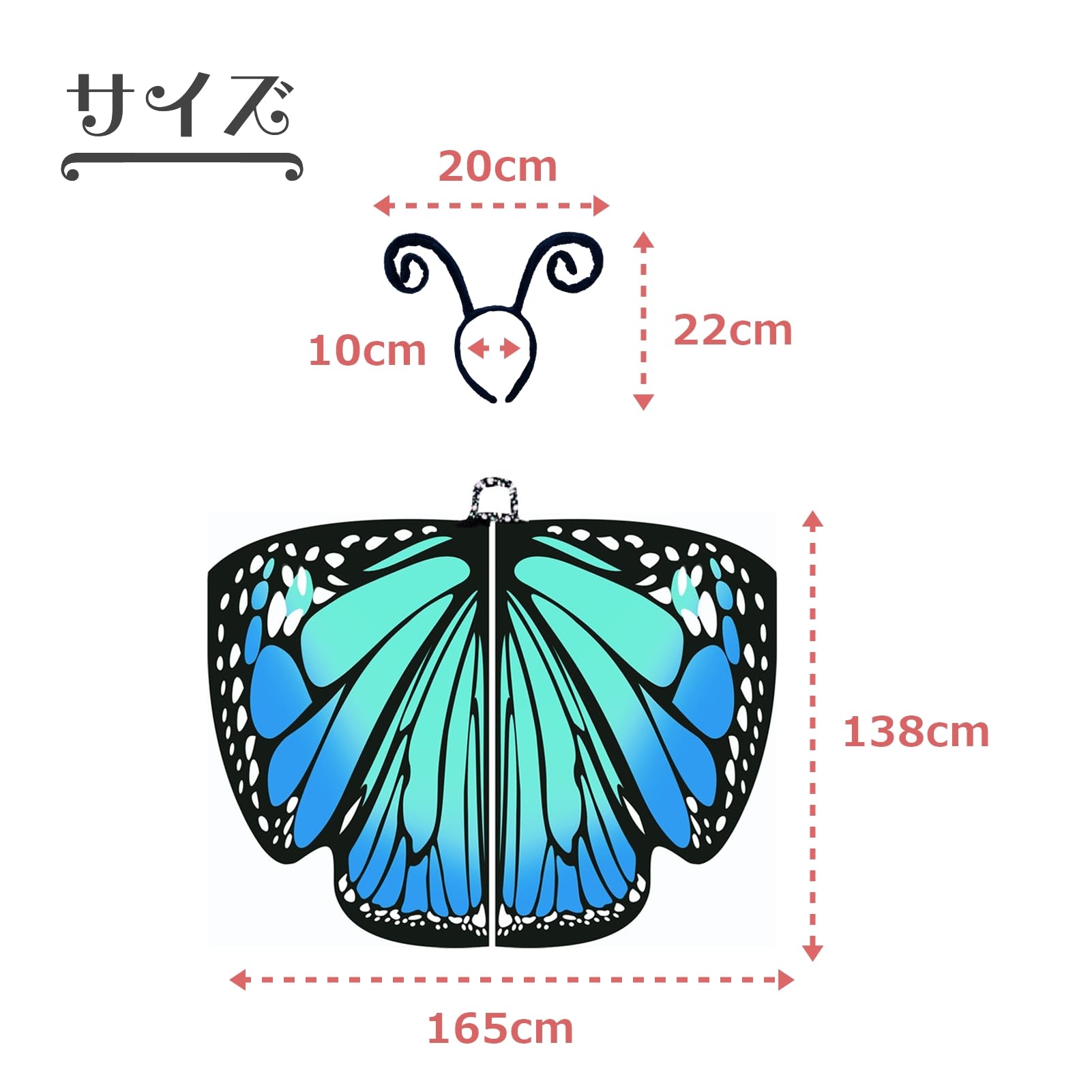 [TUISKU] 蝶 羽根 マント ハロウィン 仮装 衣装 バタフライ ケープ 蝶々 妖精 ダンス 舞台衣装 触覚カチューシャ付き