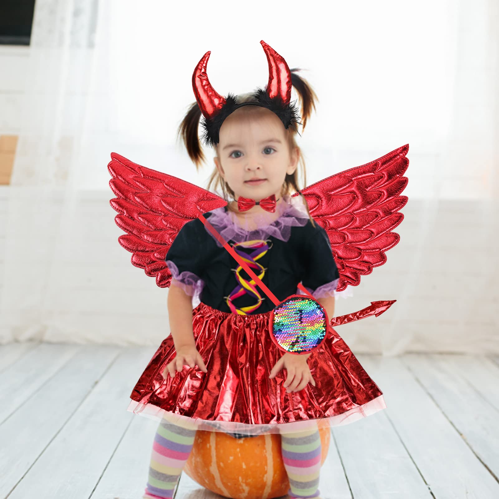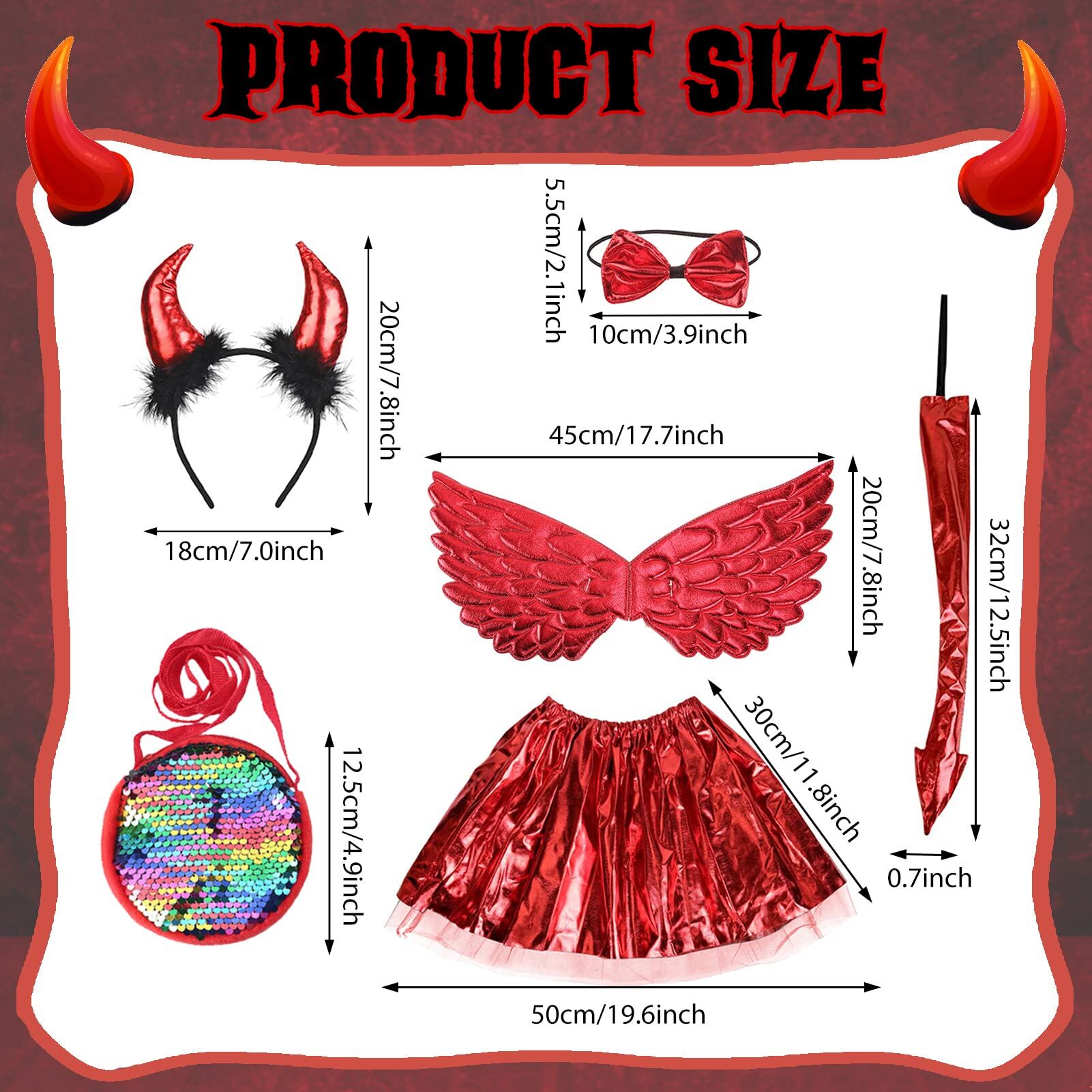 【ラブリー天使 さまざまな場所で活躍する】翼,悪魔の角、ネクタイ,スカート、カバン、しっぽ飾り- 絶妙な悪魔の形のデザイン、クリエイティブでシック、パーティーで目立ち、悪魔のコスチューム、悪魔のコスプレキットと合わせることができます。