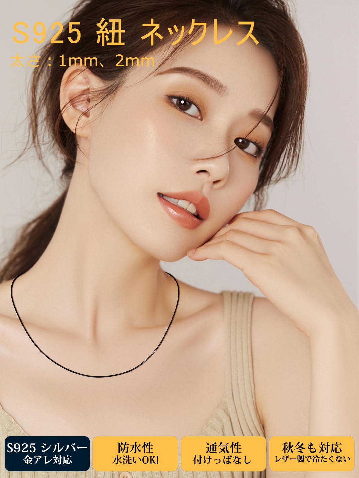 [U7] 紐ネックレス チェーン 革紐 ネックレス用 シルバー925 金属アレルギー対応 レディース 細身 1mm ワックスコード 指輪用チェーン ペンダント用 耐水性