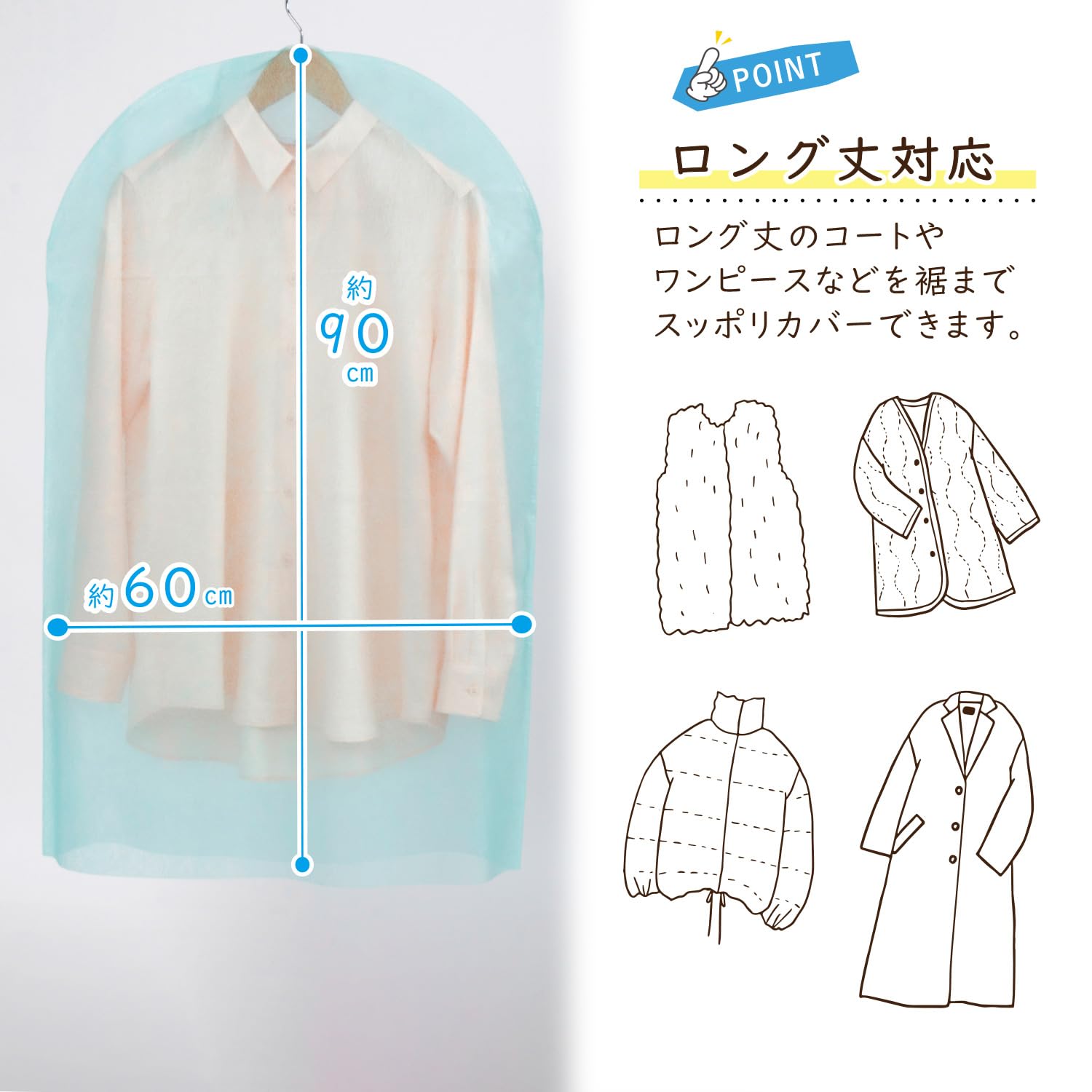 【通気性に優れた不織布製】:通気性の良い不織布でオフシーズンの衣類をホコリや湿気からガード。