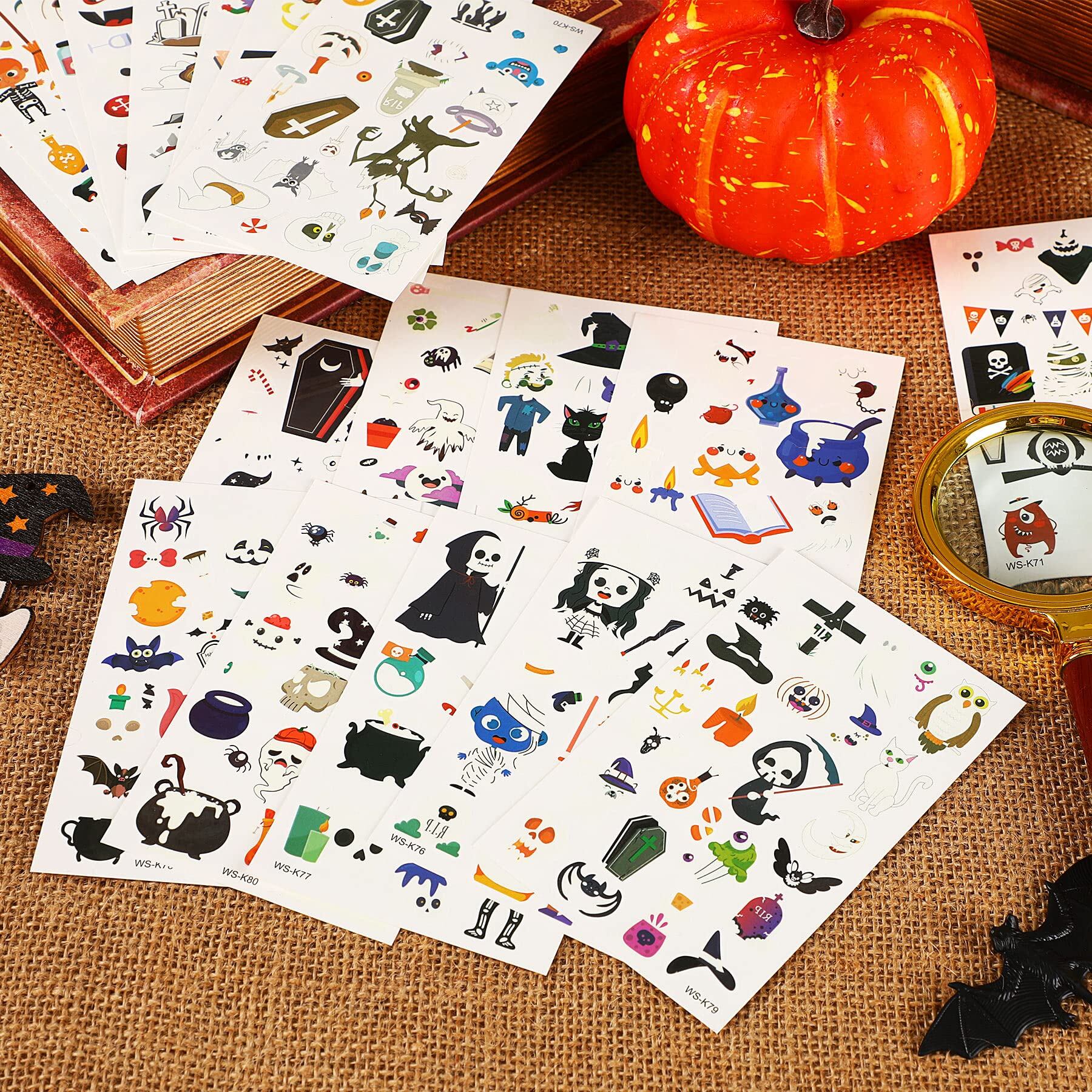 【商品仕様】ハロウィン タトゥーシール×20枚 サイズ約12cm×7.5cm(1枚あたり) 各枚に数十片、合計約400片のボディーシールがあるので、子供のハロウィン 仮装 シールに十分はずです。