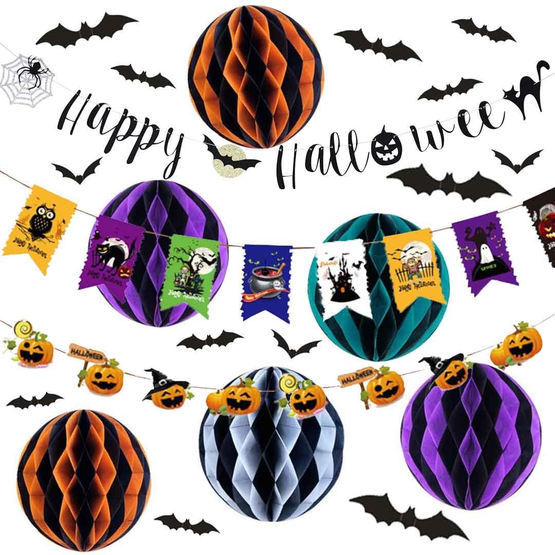 ミウォルナ ハロウィン 飾り 飾り付け 飾りつけ 壁 装飾 ガーランド 21点セット ハニカムボール オーナメント コウモリシール