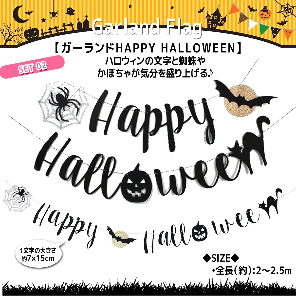 【Happy Halloweenガーランド】全長約2.5m 文字 蝙蝠 クモ 素材:フェルト