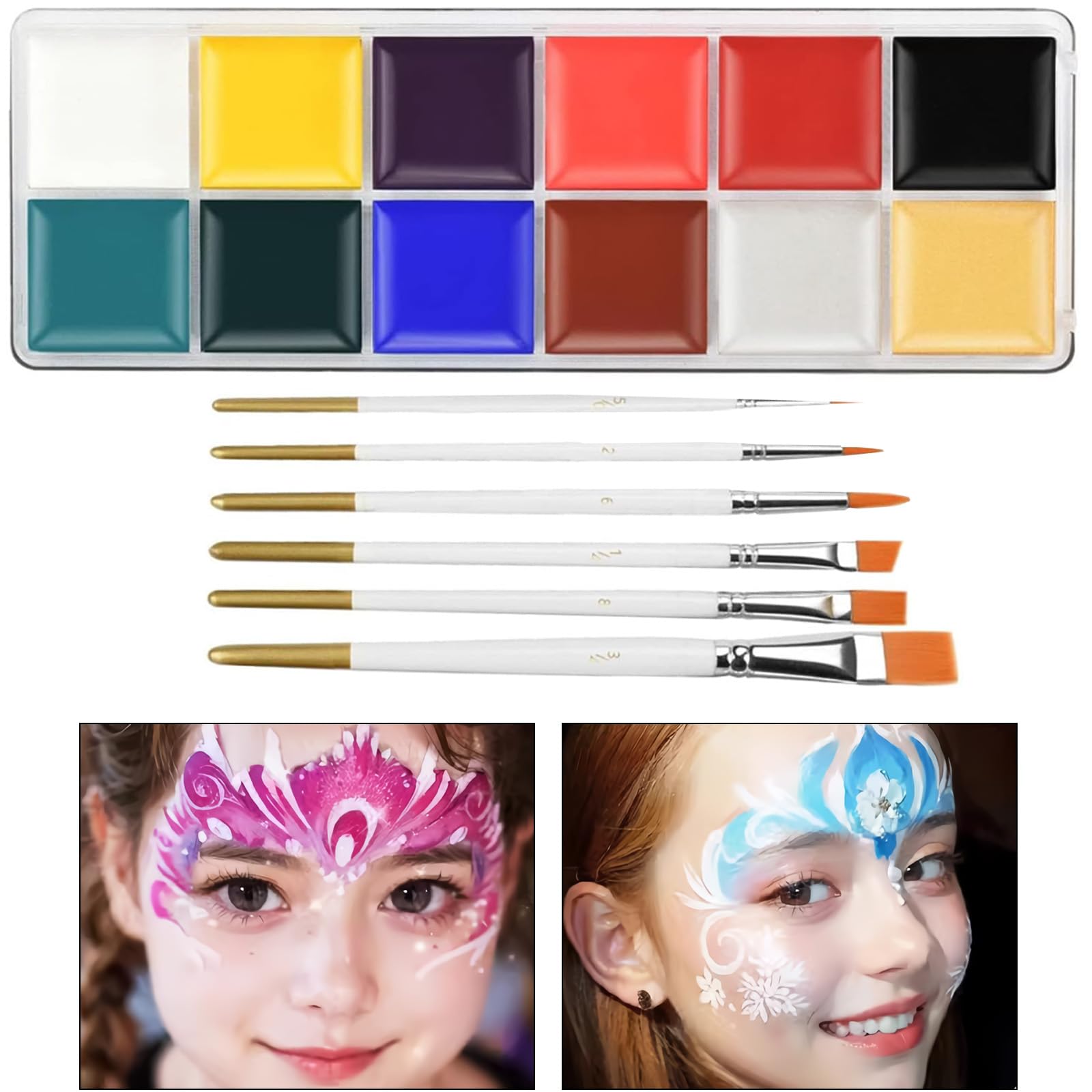 mefeny フェイスペイント ボディペイント 白塗りメイク ハロウィン 12色セット 絵の具 マタニティペイント 顔ペイント 白塗り 安全 無毒 エコ メイク ブラシ6本 コスプレ 仮装 クリスマス (12色)