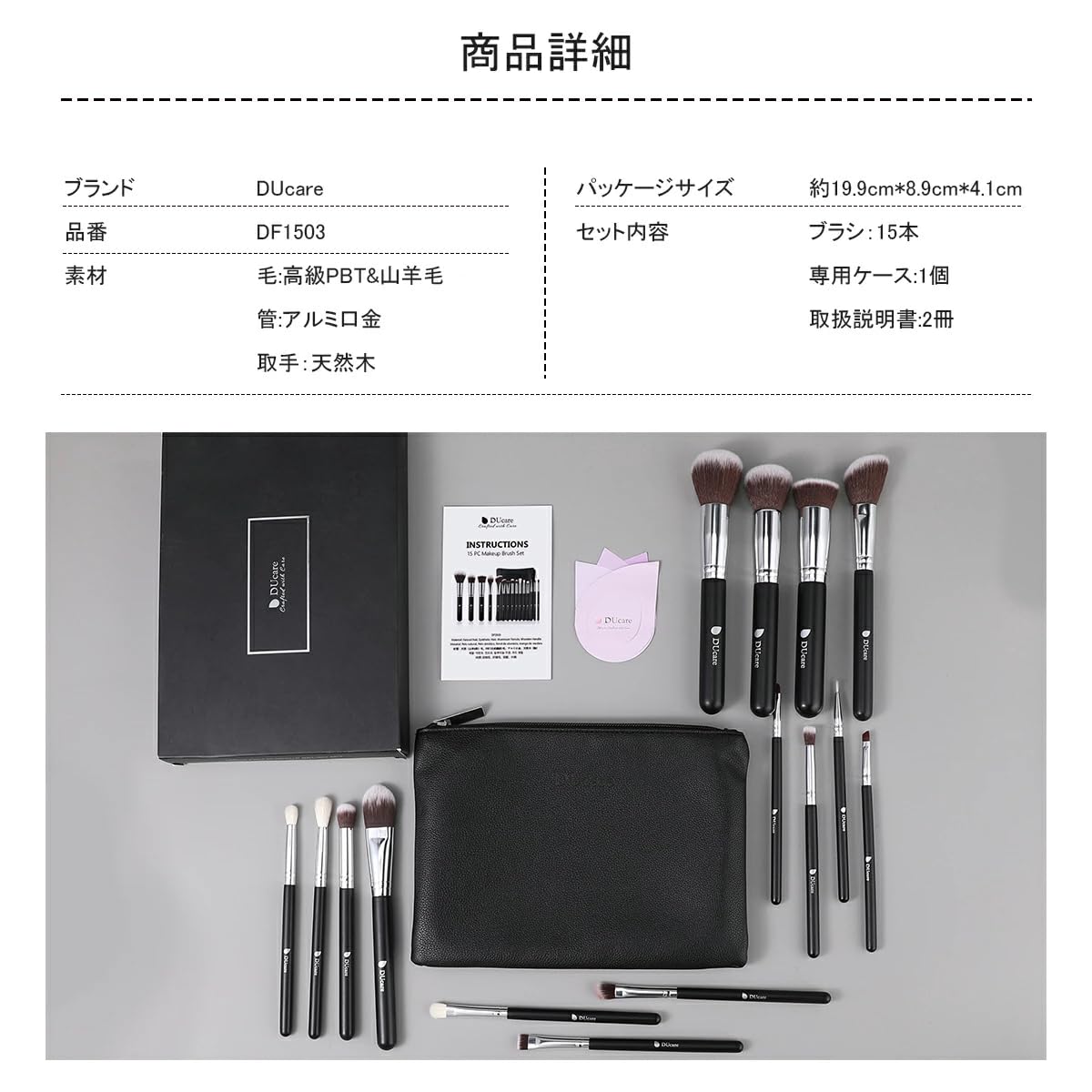 DUcare ドゥケア メイクブラシ 15本セット PU収納ポーチ付き 天然毛 アイシャドウ セット 化粧筆 プロ化粧ブラシ 持ち運び プロDF1503