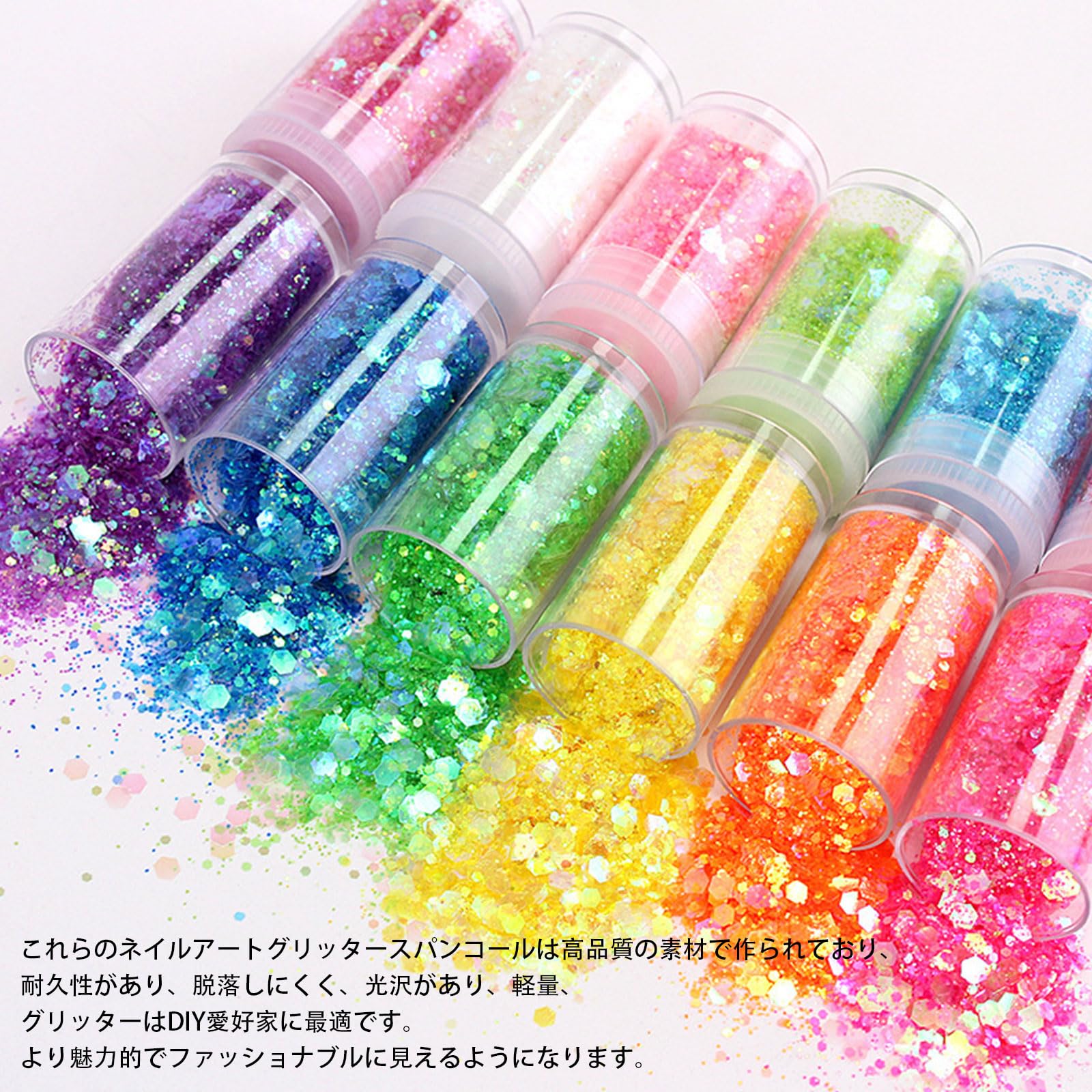 【ラメグリッター】発色が麗なネイルグリッターです。カラーのバリエーションが豊富で、ネイルをより眩しく魅力的にします。 【素材】ネイルホログラムは高品質の素材で作られており、無毒無害で、肌に優しいです。薄くて、キラキラして上品な輝きを放ちます。 【ネイルアートに】ミックスサイズがあります。極薄型なので、ジェルに埋め込みやすい。セルフネイルまたはネイルサロンに適しています。 【幅広い用途】ネイルだけでなく、ボディ、アイ、ヘア、メイク、レジン封入、ハンドメイドデコパーツなどにもお使いいただけます。 【パッケージ】ネイルグリッター32個入り。