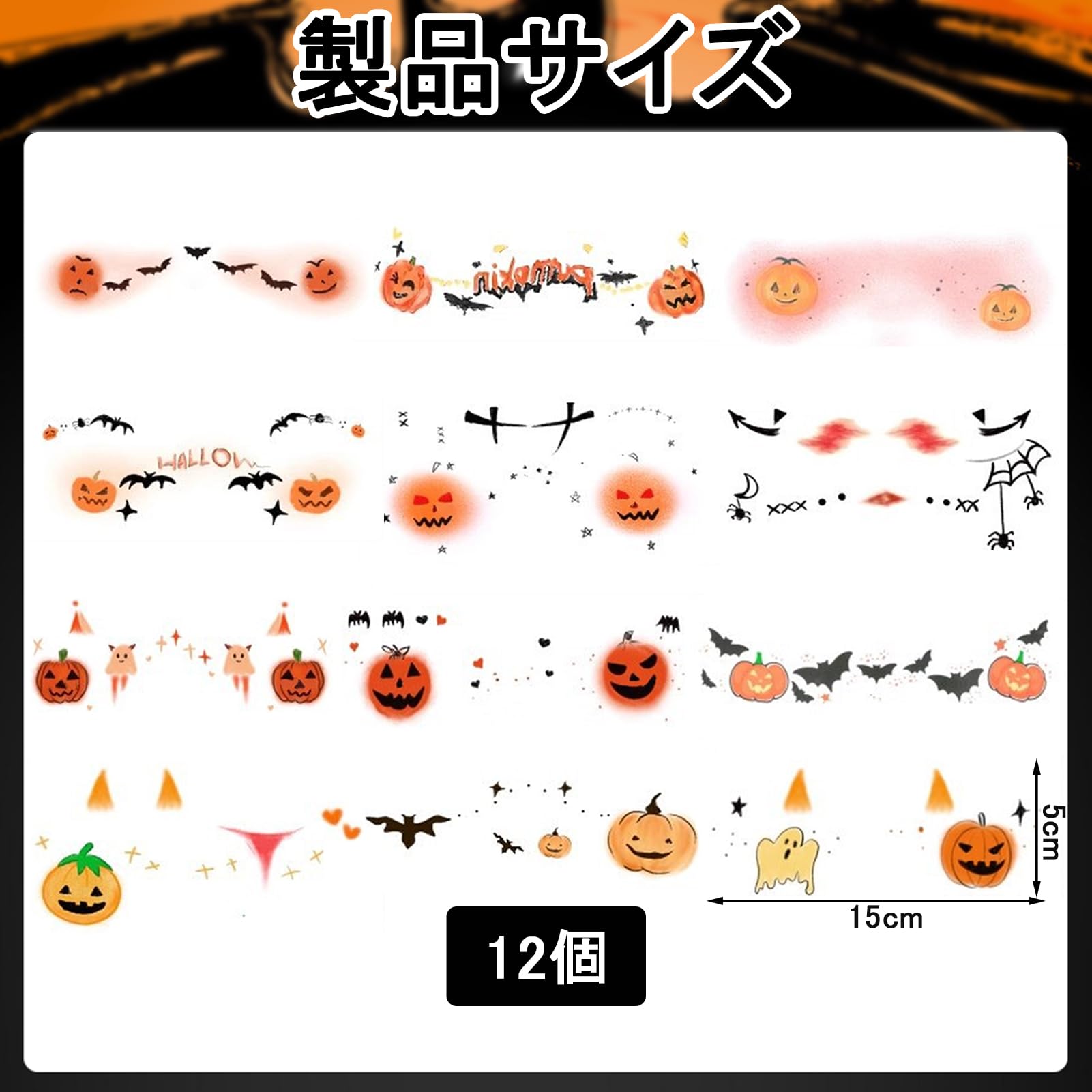 【ハロウィンエレメントのタトゥーシール】このタトゥーシールにはカボチャ、コウモリ、お化け、幽霊などのハロウィンを象徴するアイテムが含まれて、ハロウィンにぴったり!手軽にハロウィンムードを演出できる可愛いデザインです。