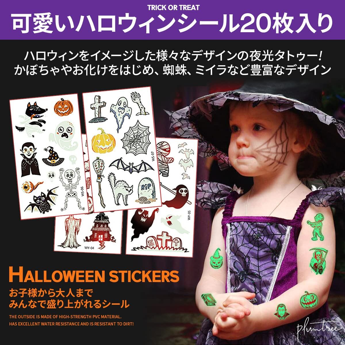 plumtree ハロウィン タトゥーシール 20枚セット シール フェイス 夜光 日本語取説付
