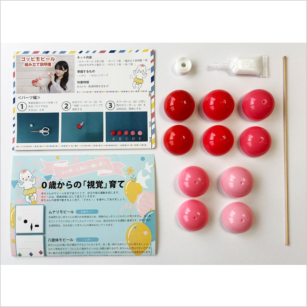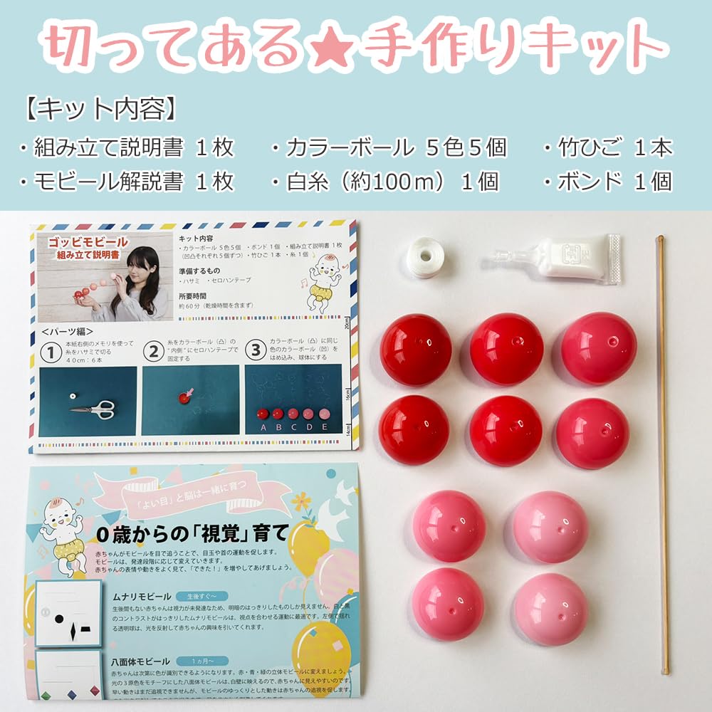 ゴッビモビール (手作りキット) モンテッソーリ 作り方 説明書付き ゴッビ 制作 モビール 型紙 印刷 カット済み 赤ちゃん 日本製 gobbi mobile ゴビモビール