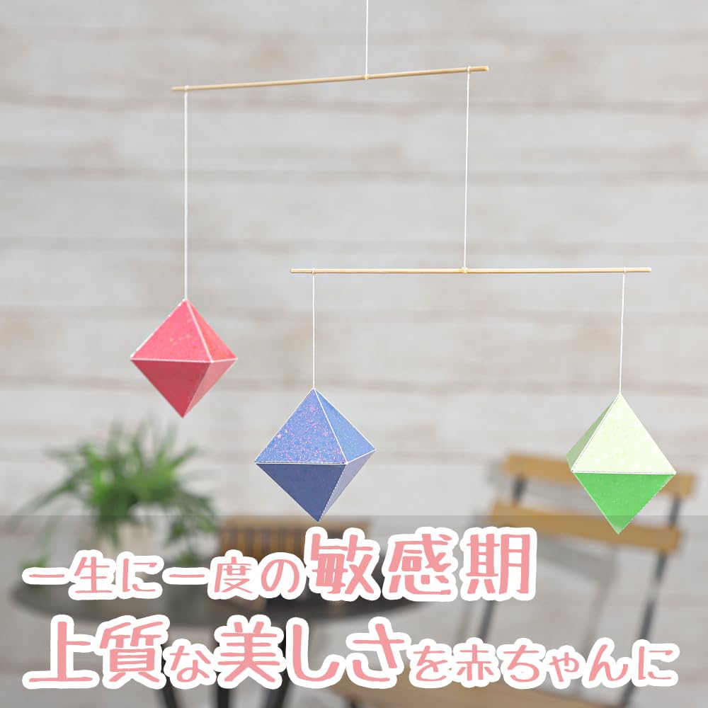 八面体モビール (手作りキット) モンテッソーリ 作り方 説明書付き 八面体 制作 モビール 型紙 印刷 カット済み 赤ちゃん 日本製 hachimentai mobile
