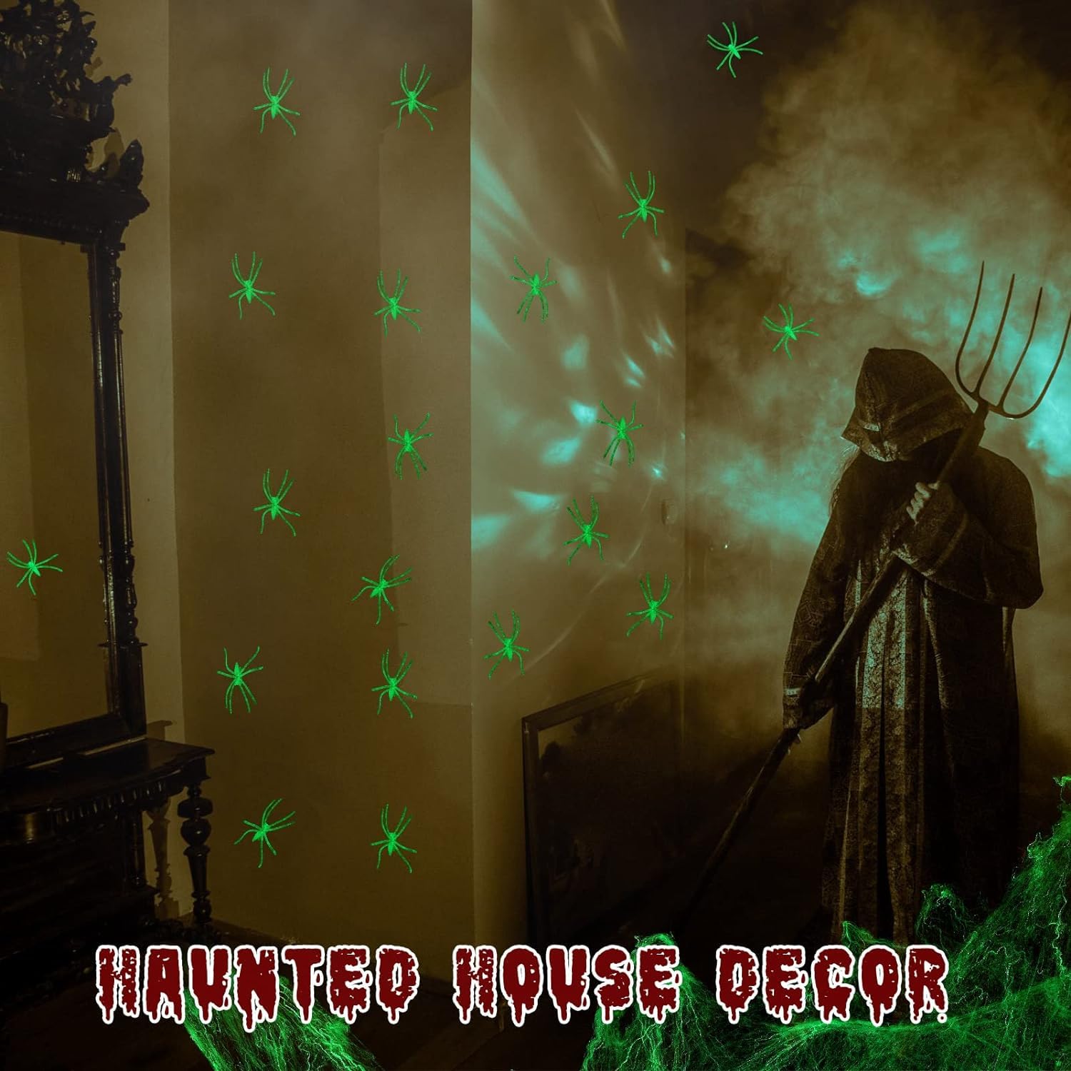 不気味なハロウィーン飾り:これらの夜光クモの巣と蛍光クモには、昼間に太陽または光の下に置いて、夜になると暗闇で緑色の蛍光を放射できます。緑色の蛍光により、あなたの家やパーティーに静かで不気味な雰囲気を加え、あなたのハロウィンパーティーをもっと楽しくしましょう。