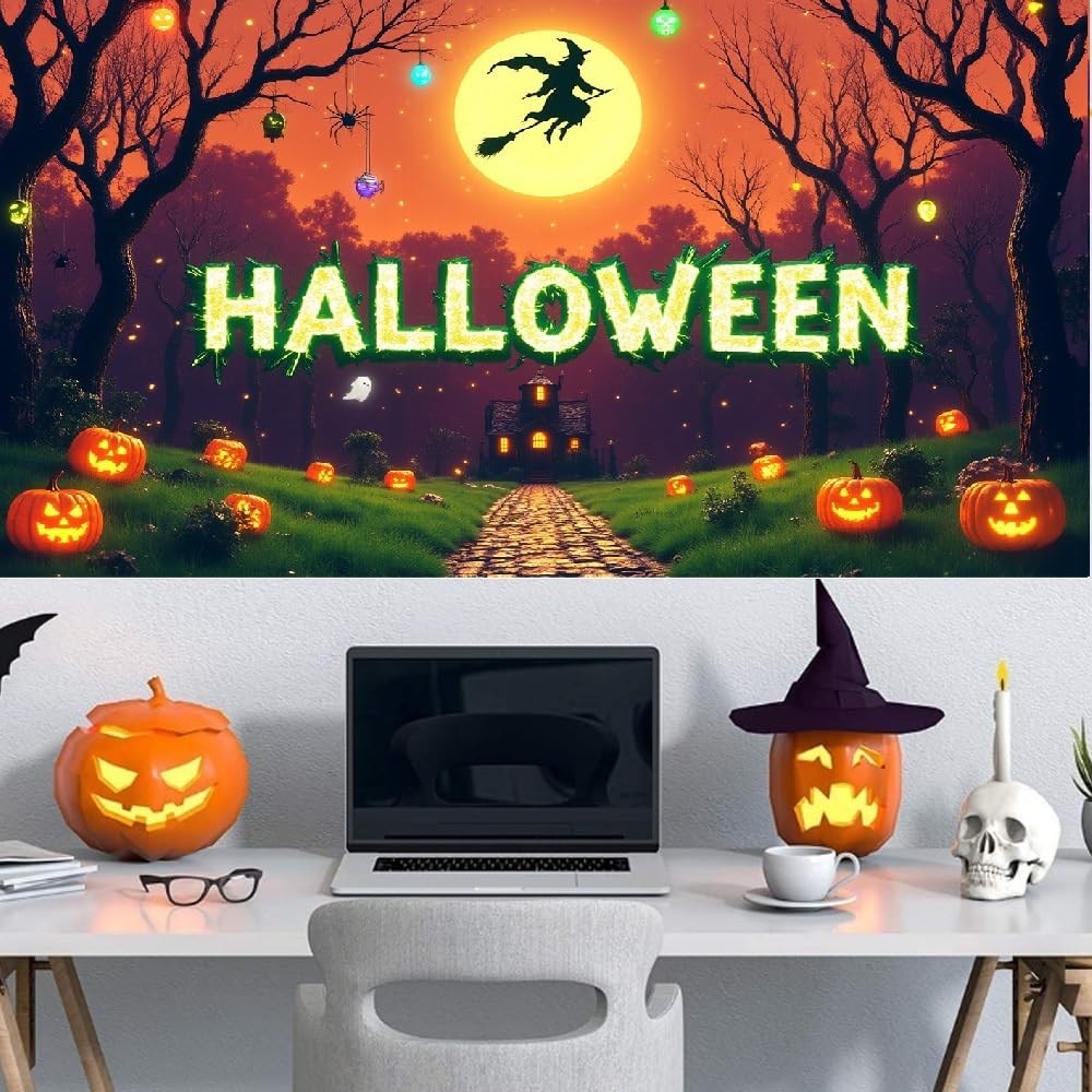 「ハロウィンの雰囲気満点」この背景布は、多種類の異なるハロウィンテーマ(カボチャ、魔女、枯れ木など)がプリントされています。それぞれのデザインは細部までこだわっており、壁やドアに飾れば一気にハロウィン気分を盛り上げます。他のハロウィン装飾と組み合わせれば、さらに豪華な演出ができます。