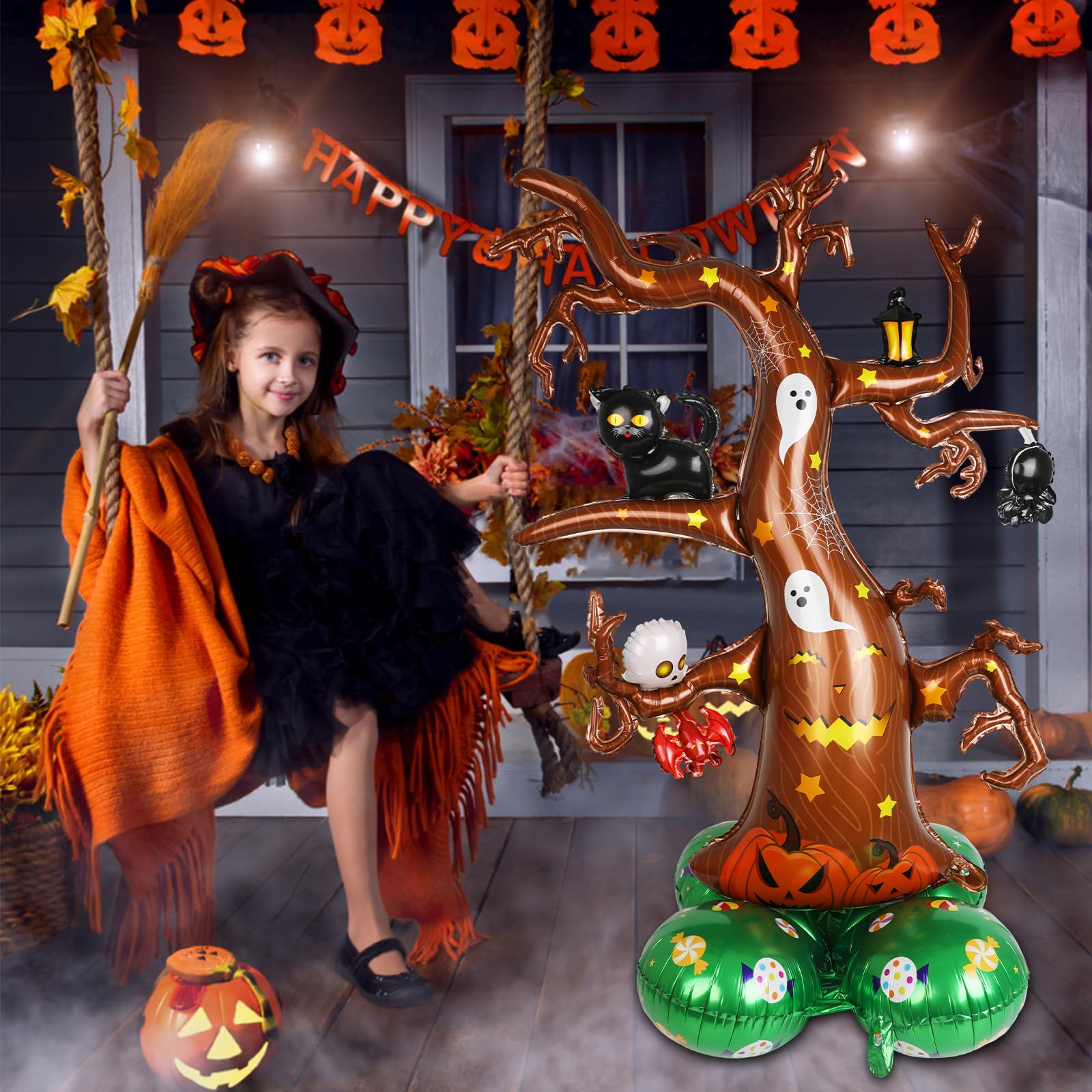 セット:バルーン【幽霊の木形1個、万聖樹形1個】、付属:紐、テープ付き