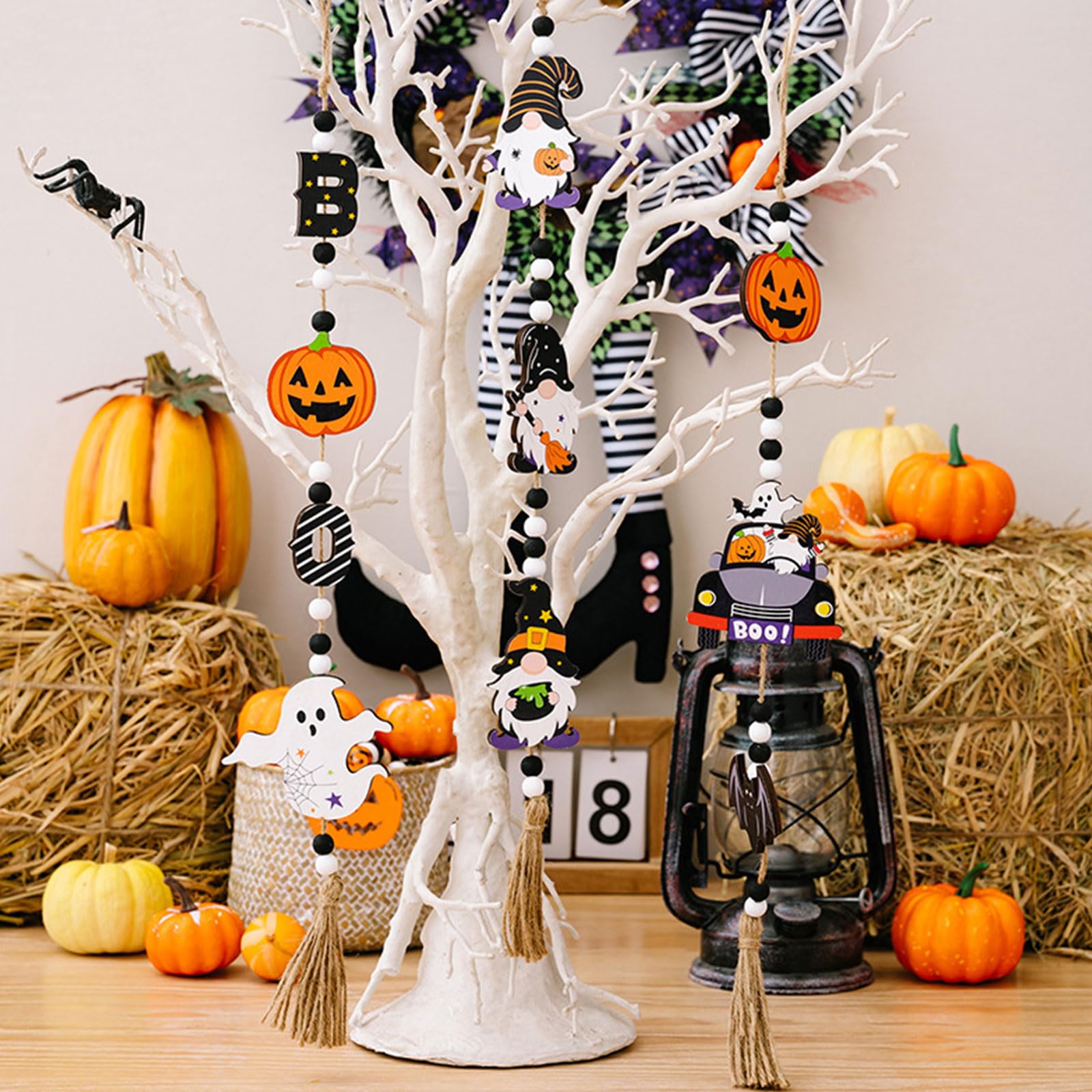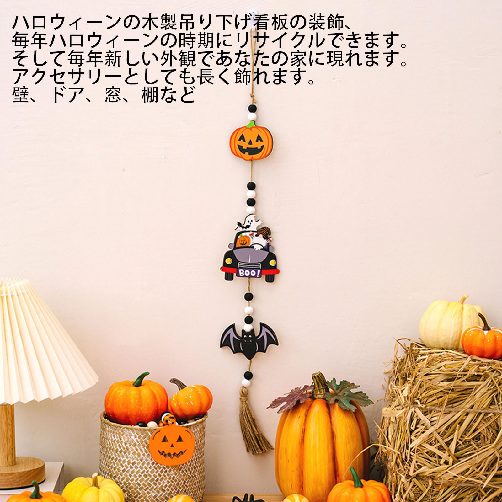 【ハロウィン飾り付け】ハロウィン木製ビーズタッセルチャームは、3つの異なる柄のチャームで構成されており、さまざまな部屋や棚に飾ることで、ハロウィンの雰囲気を高めることができます。