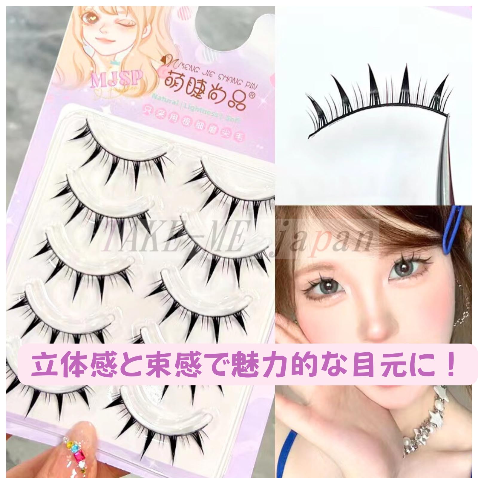 TAKE-ME japan つけまつげ 束感 ナチュラル 5ペア 人気 透明軸 女優まつげ マンガ風メイク 大きな瞳 コスプレ イベント 軽量 やわらかい (FC026)