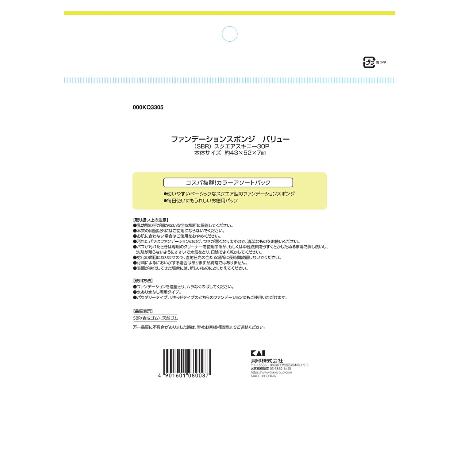 貝印 ファンデーションスポンジ バリュー SBR スクエアスキニー 薄め 30P 大容量 もちもち感触 パフ 水あり 水なし パウダー リキッド KQ3305