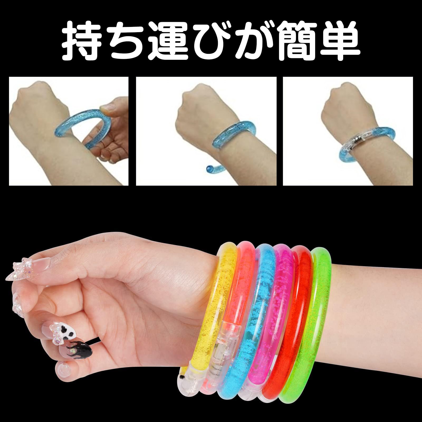 使用シーン:光る腕輪が明るく点滅する光で、暗闇の中でもパーティーを一層盛り上げます。お祭りやライブ、キャンプ、パーティー、誕生日会、ディナーイベントはもちろん、花見や夜釣り、カラオケ、忘年会など、様々なシーンで大活躍!