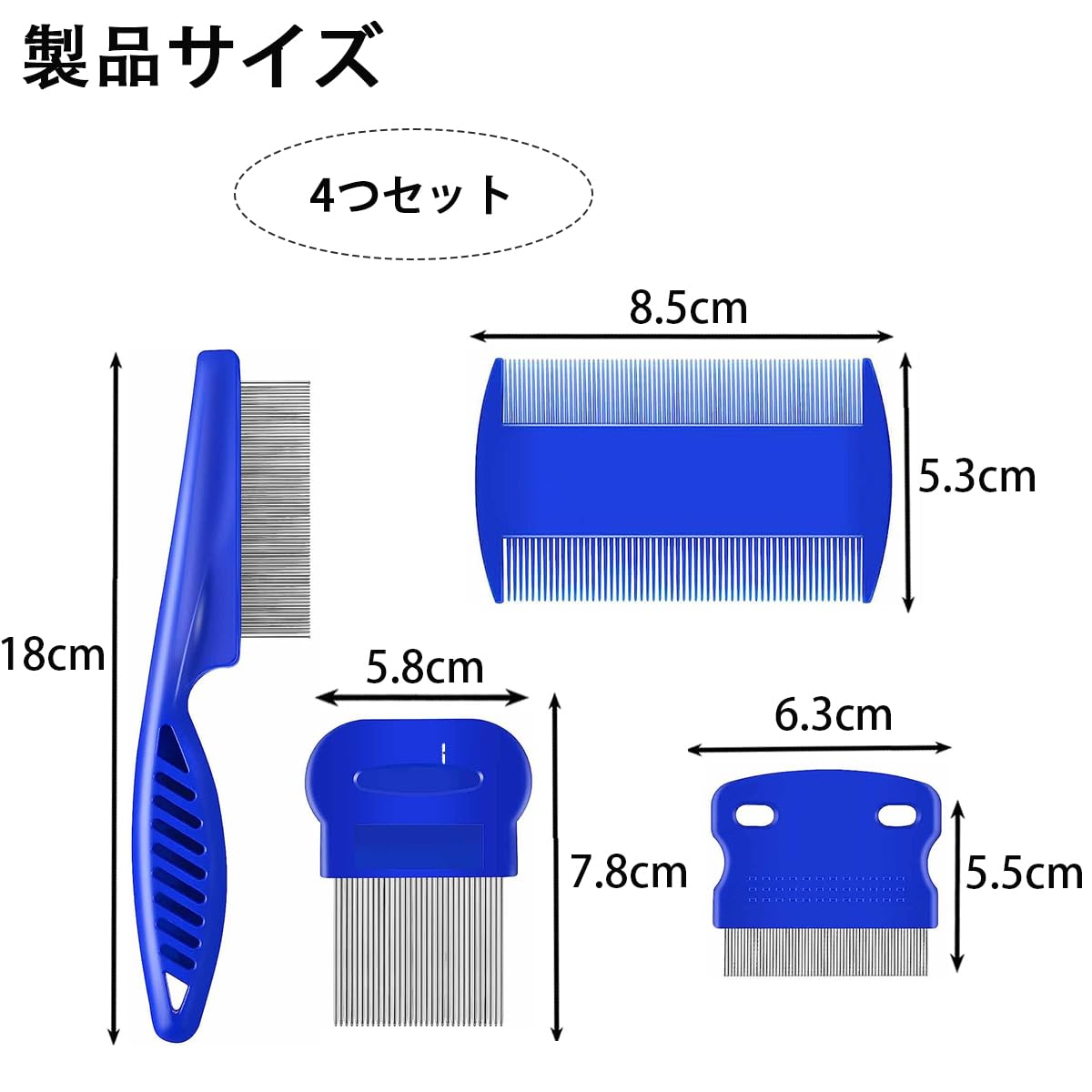 【仕様】:ペット用櫛4点セット、セットには4つの異なるサイズの櫛が入っている。